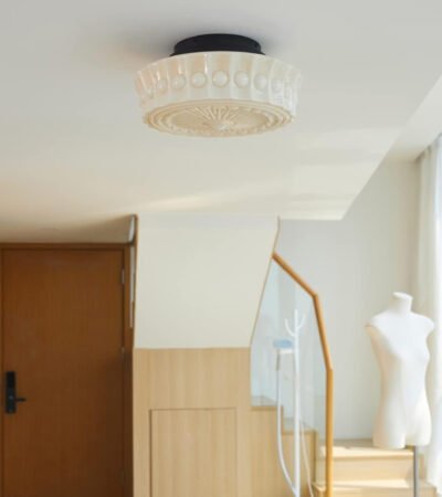 Round Cream Glass Flush Mount Ceiling Light-WM1132