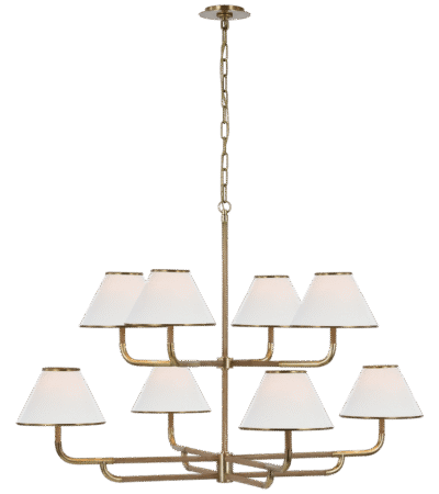 $2,226.696 Heads White Lampshade Rigby Grande Metal And Wood Chandelier