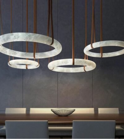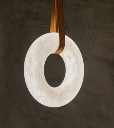 Oslo Alabaster Ring Round Pendant Chandelier, Modern Leather Strip Chandelier