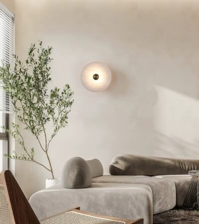 Evalyn Melange Modern Alabaster Round Wall Sconce