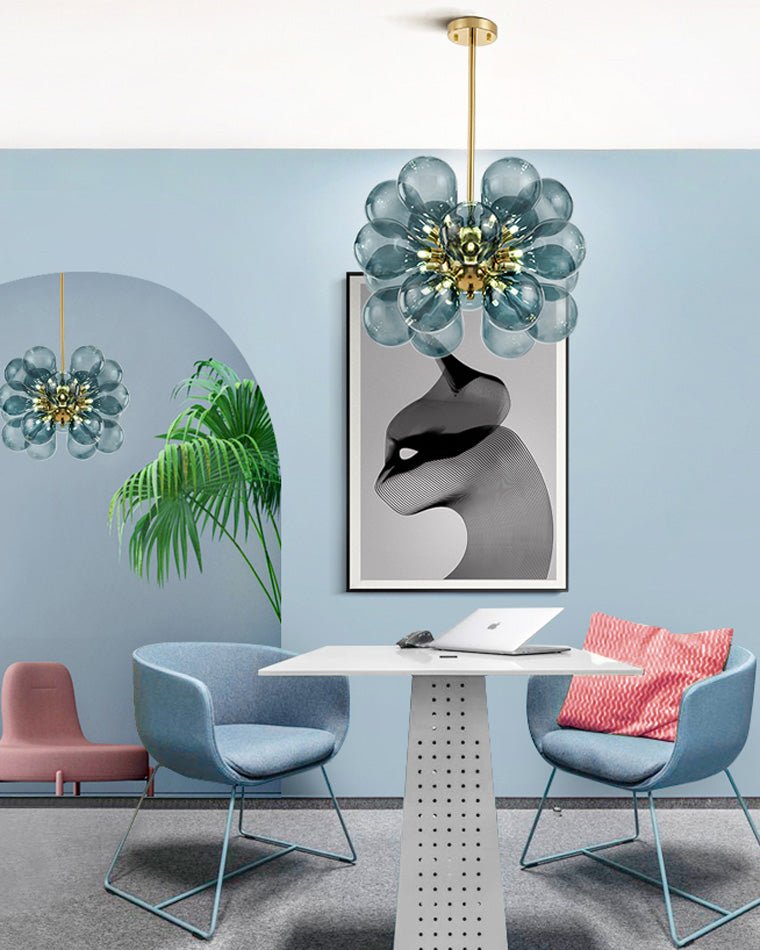 Bring drama and intrigue to your space with the jucci 18-light hanging lamp! This stunningly light fixture boasts bright LED lighting and a glass bubble design that complements any indoor space — from the kitchen to the living room, and everywhere in between. Create a contemporary yet decorative atmosphere with this elegant and artistic statement piece.