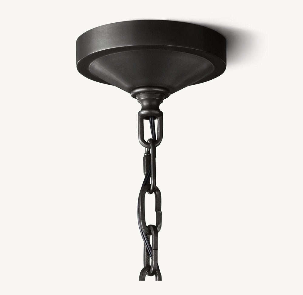 The forthright design of our lantern-style fixture reflects the functional architecture of 19th-century lighting. We’ve omitted the glass panes that once shielded the candle’s flame to allow unobstructed illumination.