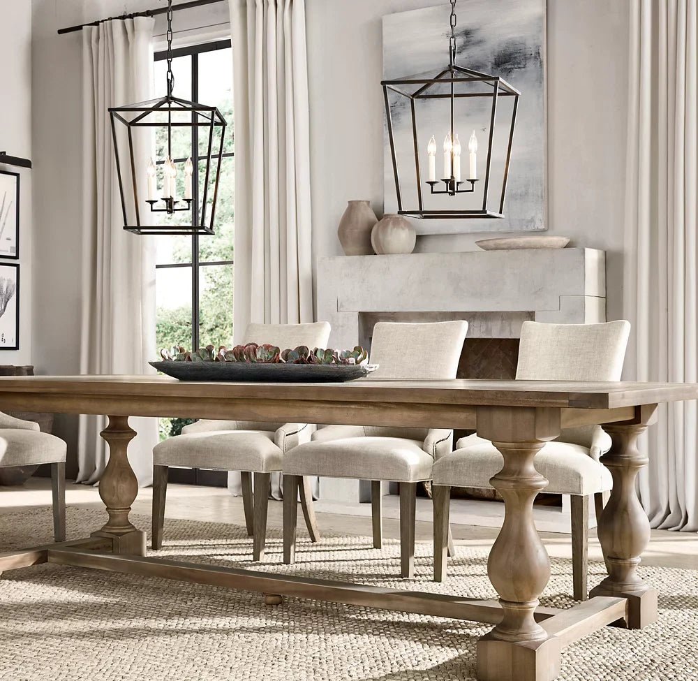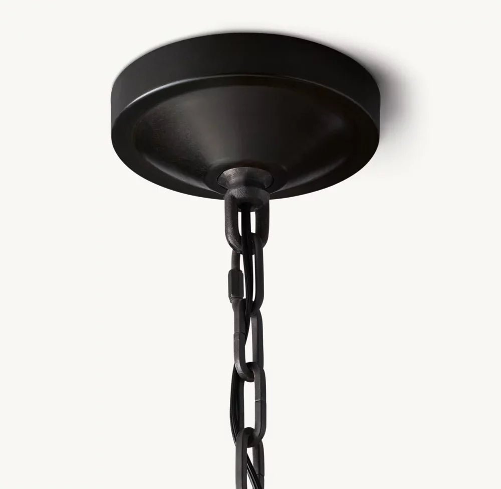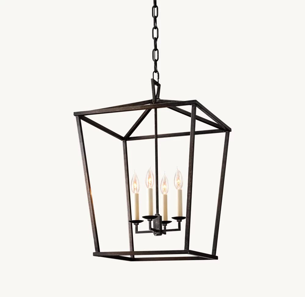 The forthright design of our lantern-style fixture reflects the functional architecture of 19th-century lighting. We’ve omitted the glass panes that once shielded the candle’s flame to allow unobstructed illumination.