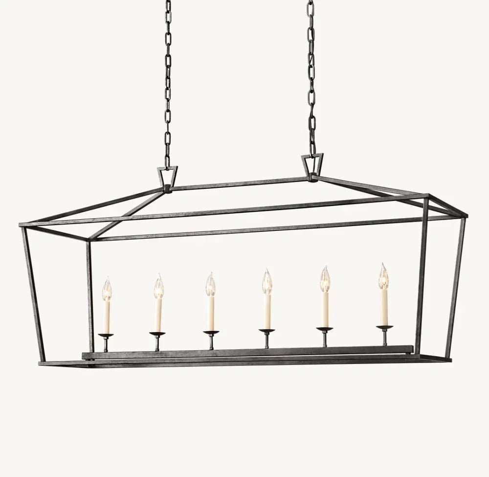 The forthright design of our lantern-style fixture reflects the functional architecture of 19th-century lighting. We’ve omitted the glass panes that once shielded the candle’s flame to allow unobstructed illumination.
