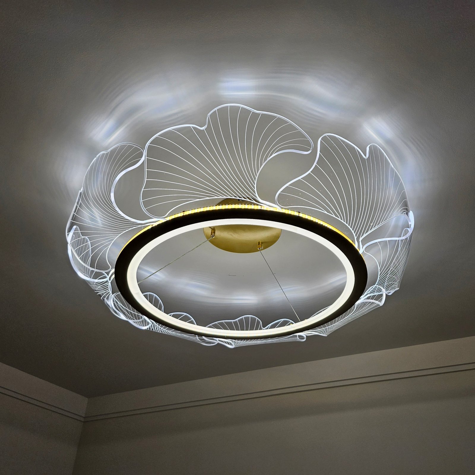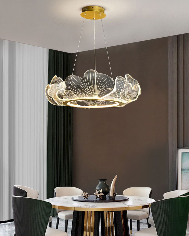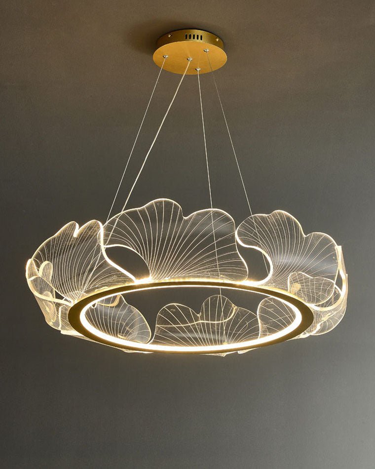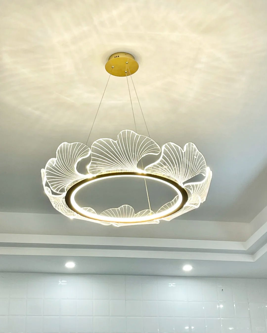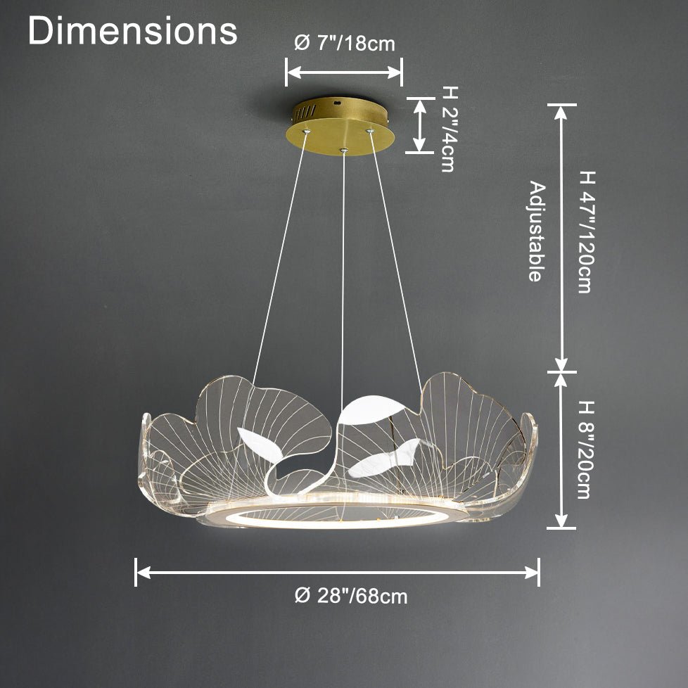 Our jucci Acrylic Ginkgo Leaf Round Pendant Light is the perfect statement piece to bring your modern design dreams to life. It will make any dining room, bedroom or living room look stylish and contemporary. Its circular shape featuring acrylic and decorative ginkgo leaves will add a touch of elegance to your space. Bring home your dream design today!