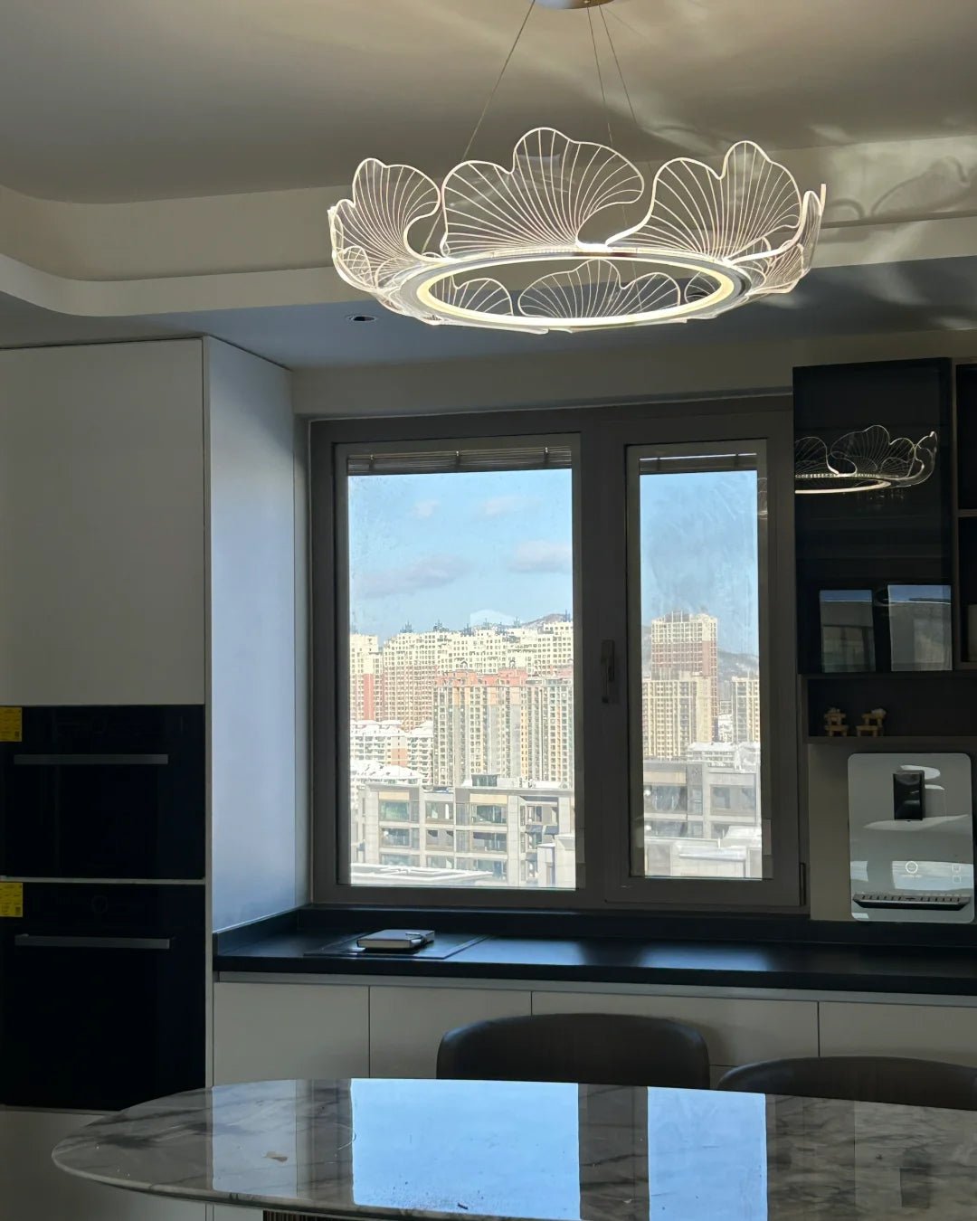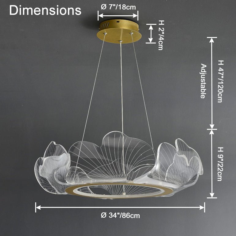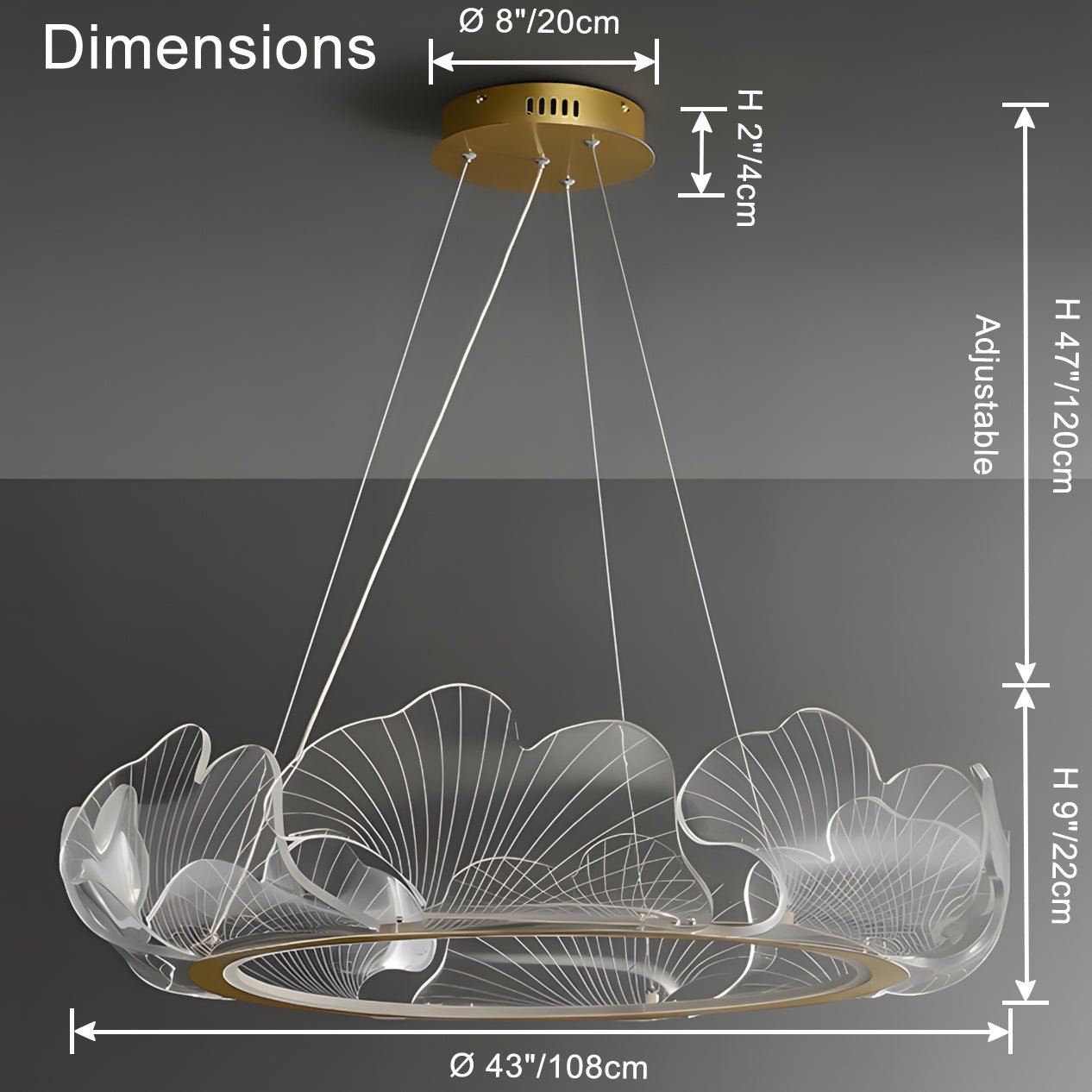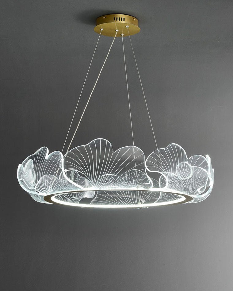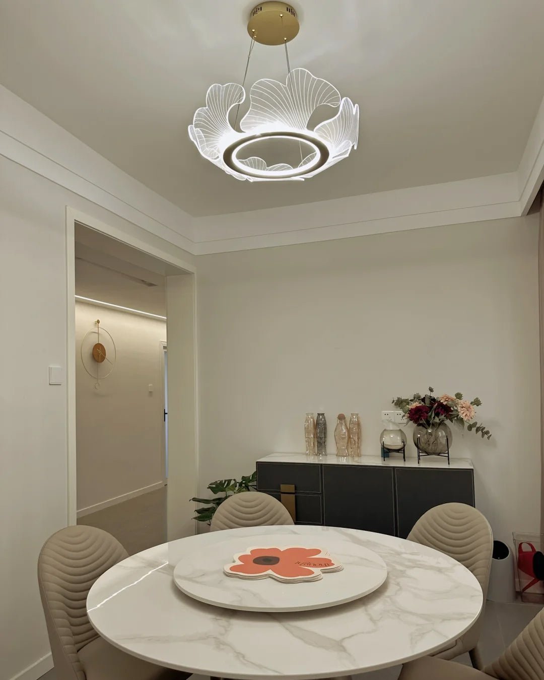 Our jucci Acrylic Ginkgo Leaf Round Pendant Light is the perfect statement piece to bring your modern design dreams to life. It will make any dining room, bedroom or living room look stylish and contemporary. Its circular shape featuring acrylic and decorative ginkgo leaves will add a touch of elegance to your space. Bring home your dream design today!