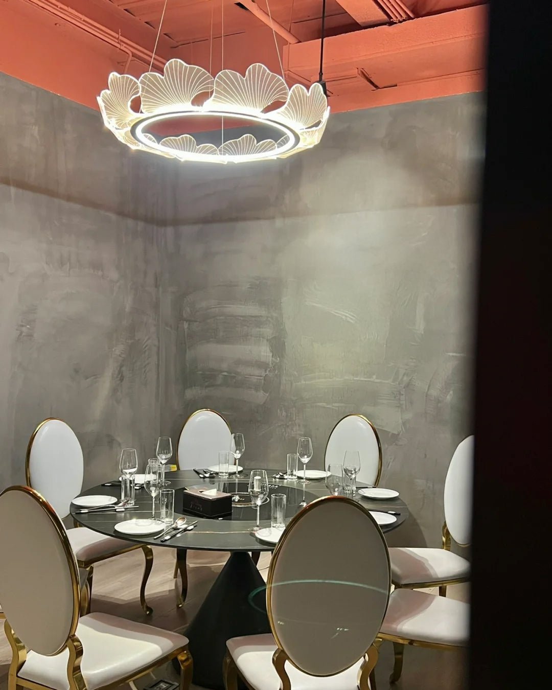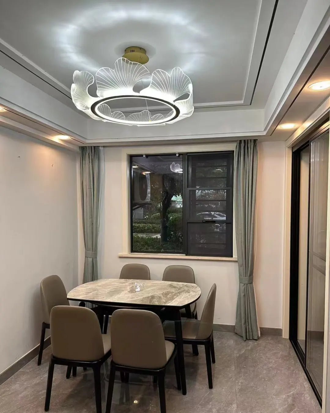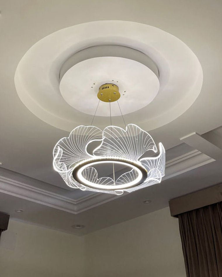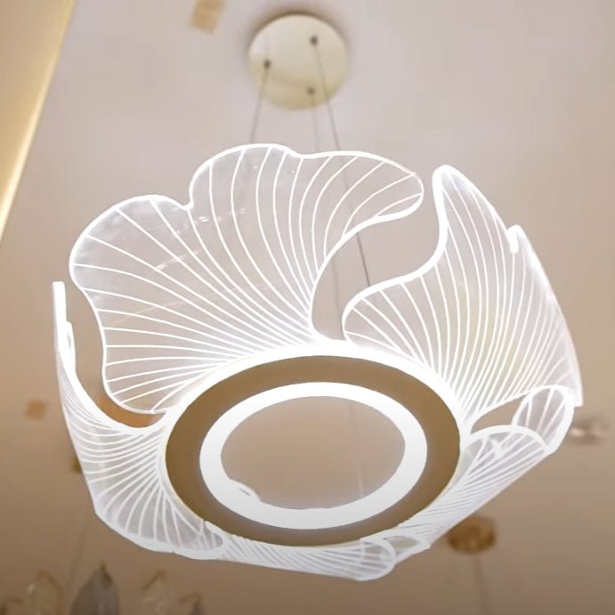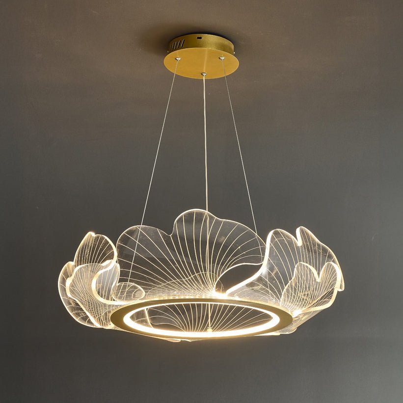 Our jucci Acrylic Ginkgo Leaf Round Pendant Light is the perfect statement piece to bring your modern design dreams to life. It will make any dining room, bedroom or living room look stylish and contemporary. Its circular shape featuring acrylic and decorative ginkgo leaves will add a touch of elegance to your space. Bring home your dream design today!