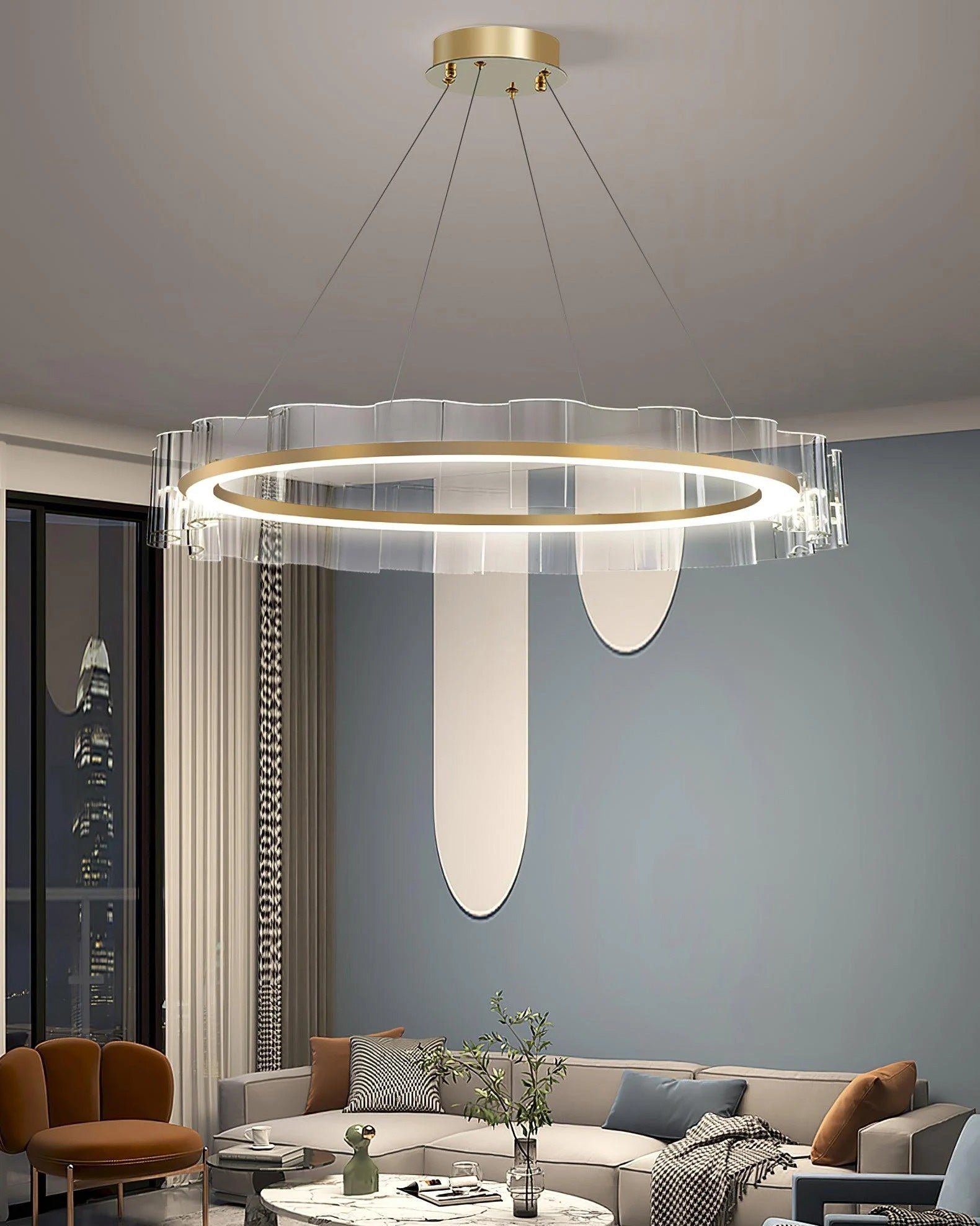 Tags: 2000-2999, 2024-11, 500-899, 900-1999, Acrylic, Chandelier, Circular, contemporary, Dining Room, gold