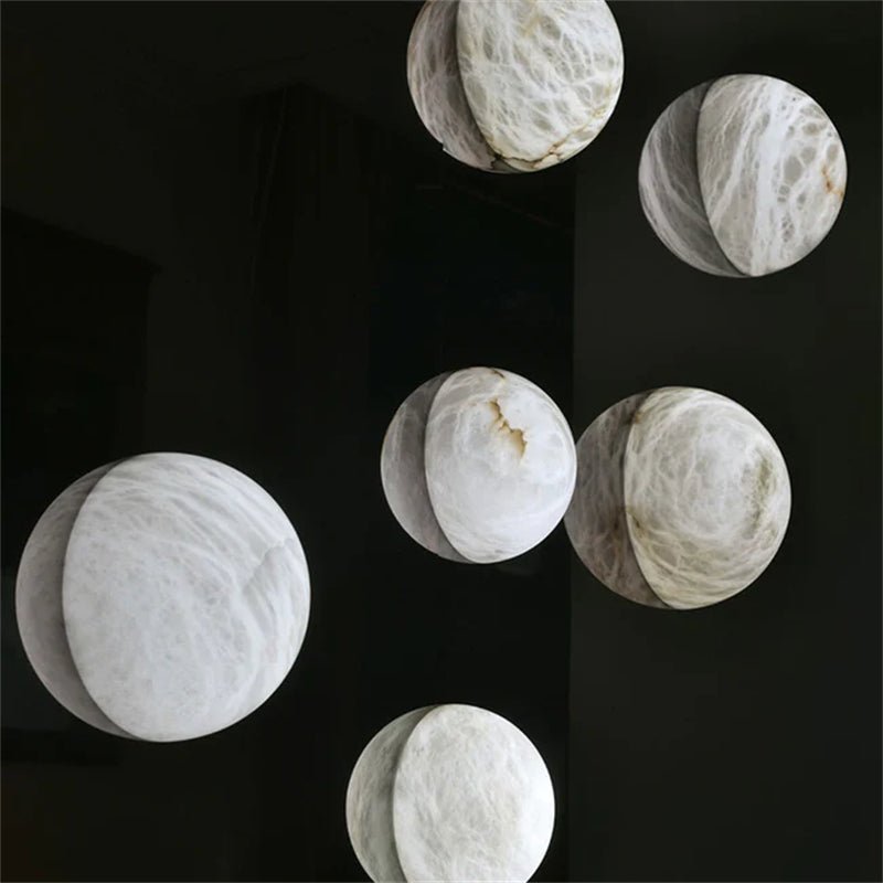This alabaster wall sconce is with galactic appearance. Makes it a radiant focal point in your space. The alabaster shade is with the pearl like. And it can be combined with different quantity. Pure and eye-catching. Suitable for bedroon. Hallway or etc.