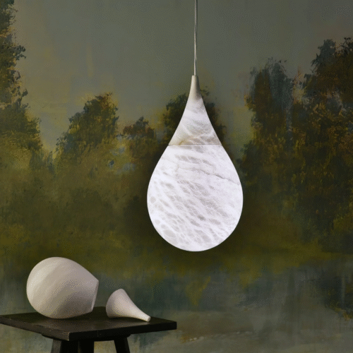 Alabaster Raindrop Pendant Lighting 7″ D, Dining Table Pendant is like a stone Raindrop. It is with its natural look, and Its weightless design softens the stone’s character.