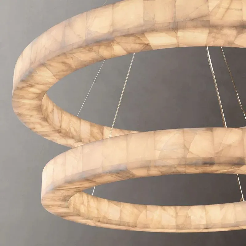 Alabaster Riven Two-Tier Round Chandelier 60″