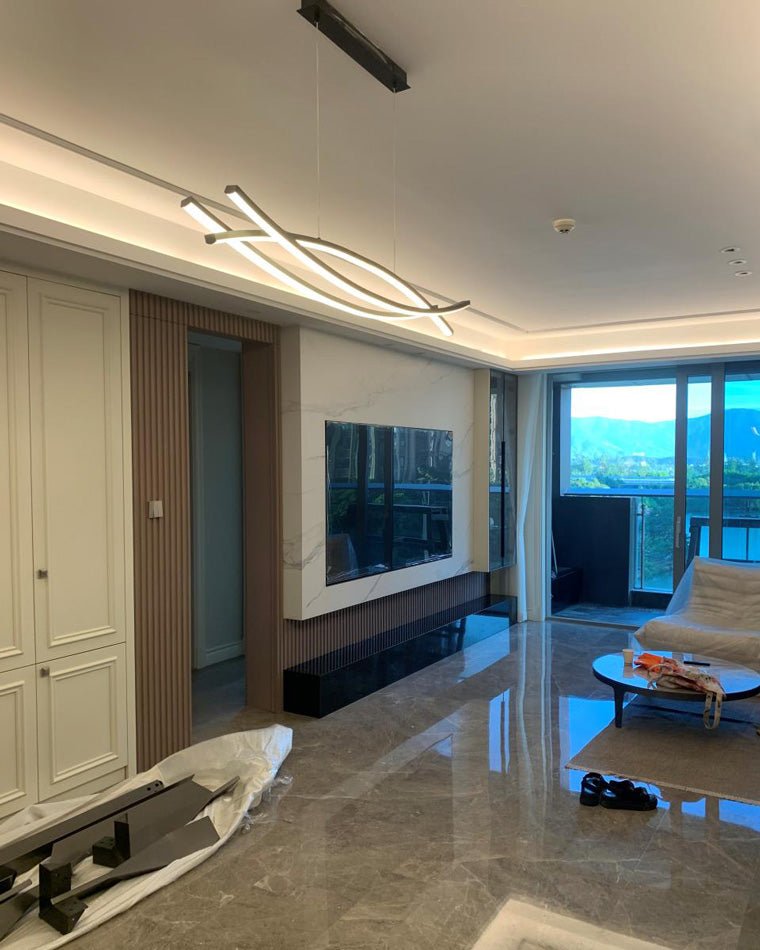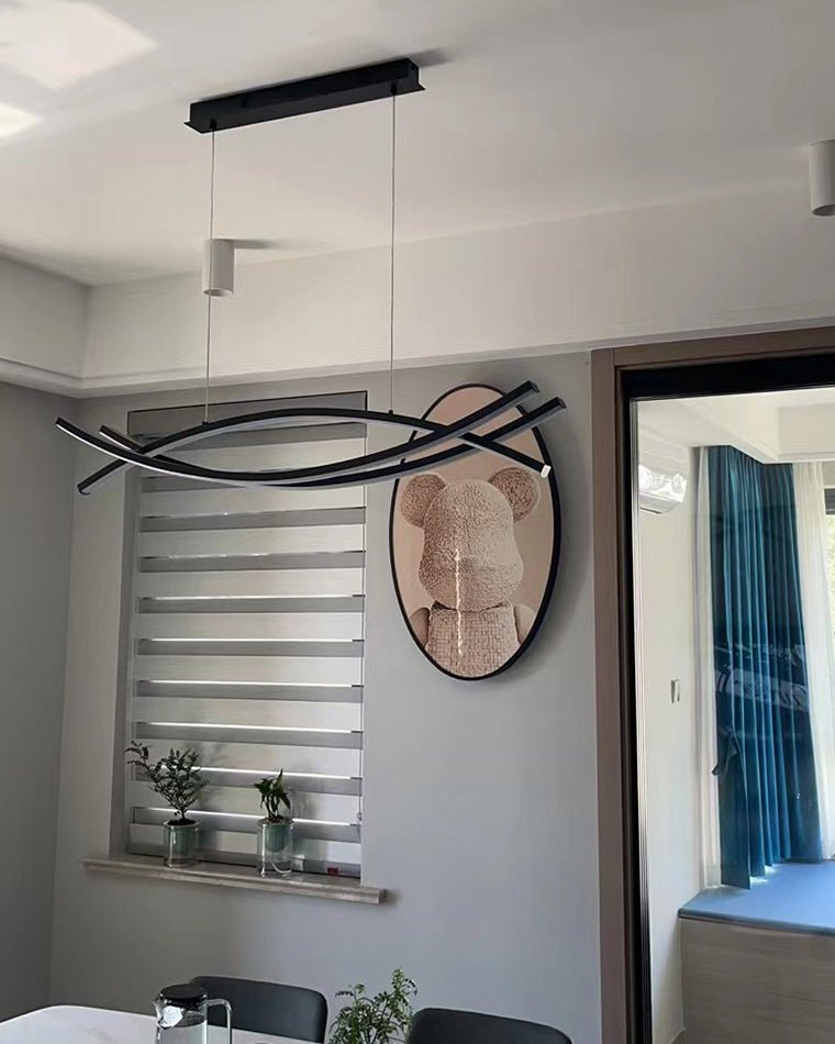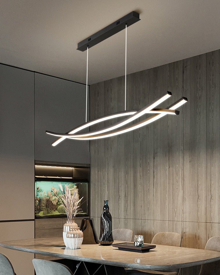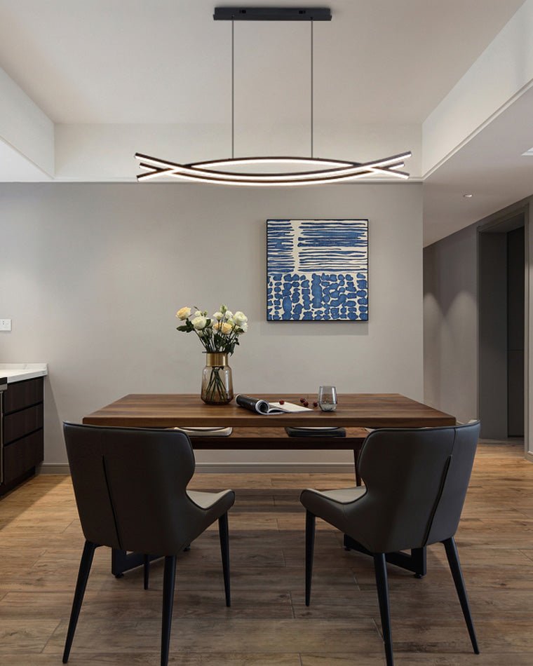 The arc chandelier be characterized by symmetrical double crossed bowed LED arms, With its modern and minimal design, the sleek and delicate chandelier is an ideal compliment to a contemporary dining or kitchen island.