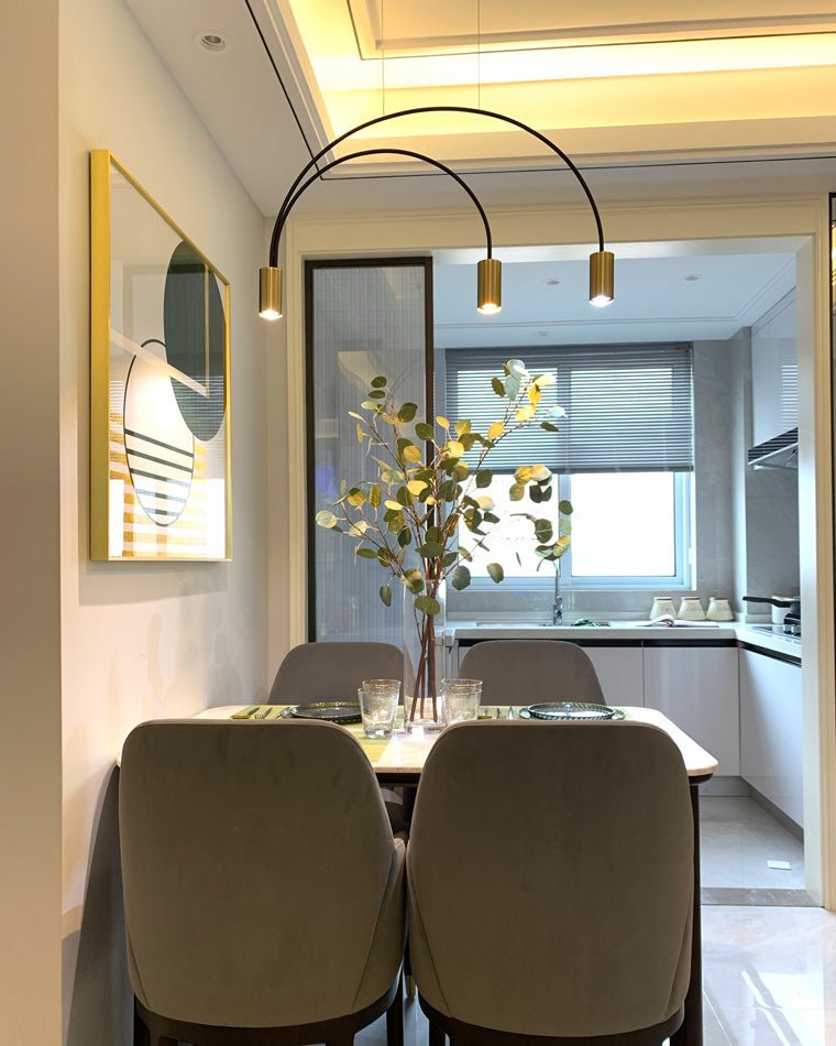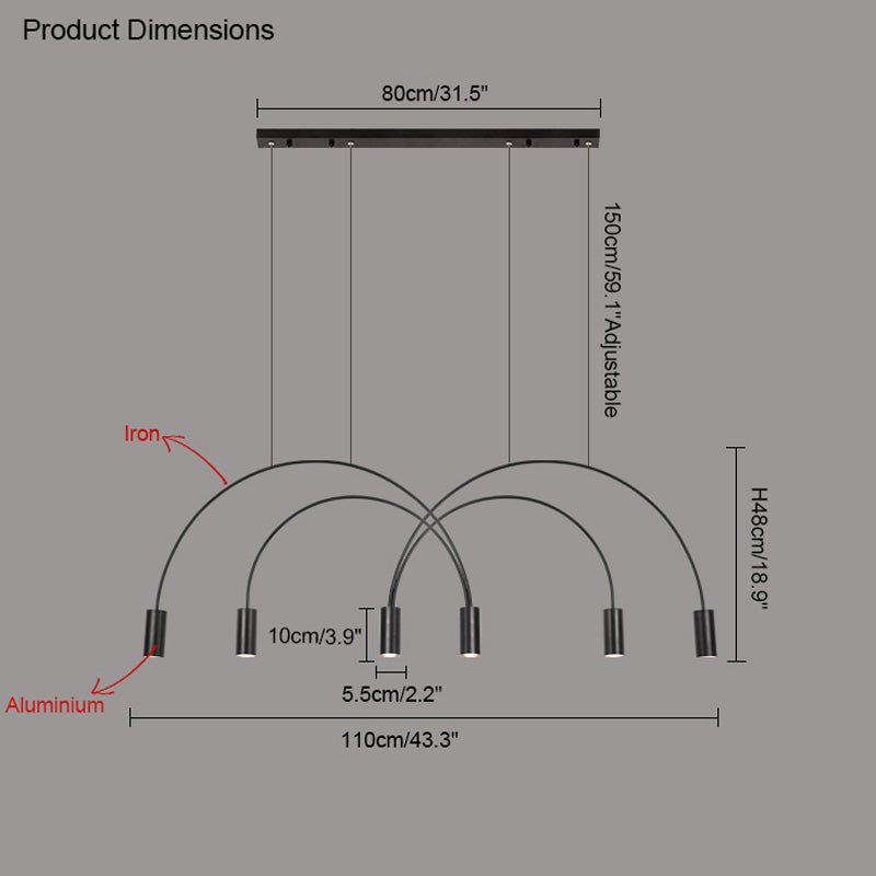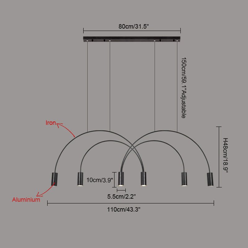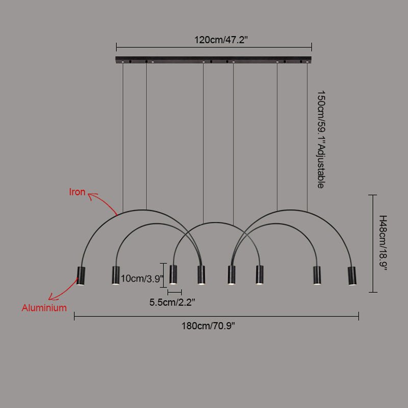 This jucci Arc Pendant Lamp is a modern and elegant statement piece, perfect for any contemporary indoor space. this unique Led light features cascading rainbow arcs, perfect for creating a minimalist and artistic atmosphere. Whether installed in a restaurant, kitchen, or dining room, this light fixture is sure to provide an exclusive, tasteful atmosphere.