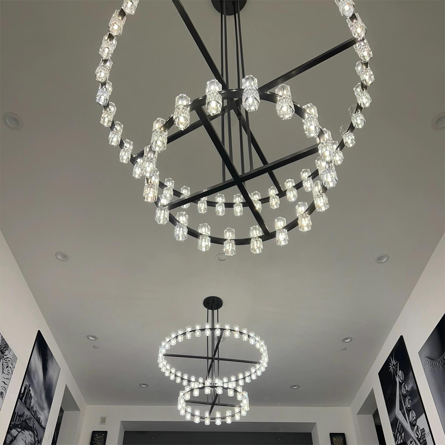 3 Layers Extra Large Living Room Chandelier Luxury Foyer Entryway Crystal Light Fixture