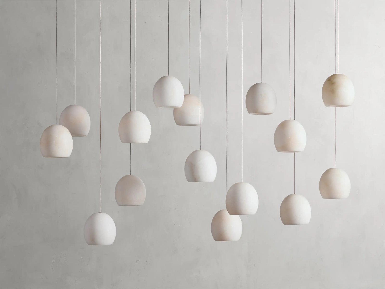 Featuring an adjustable cable cascading into a curved shade made from natural alabaster stone, our Arica Collection adds a touch of organic elegance. Designed to highlight the beautiful variations found in natural alabaster, each luminous shade showcases delicate swirls of unique veining making each pendant truly one-of-a-kind.