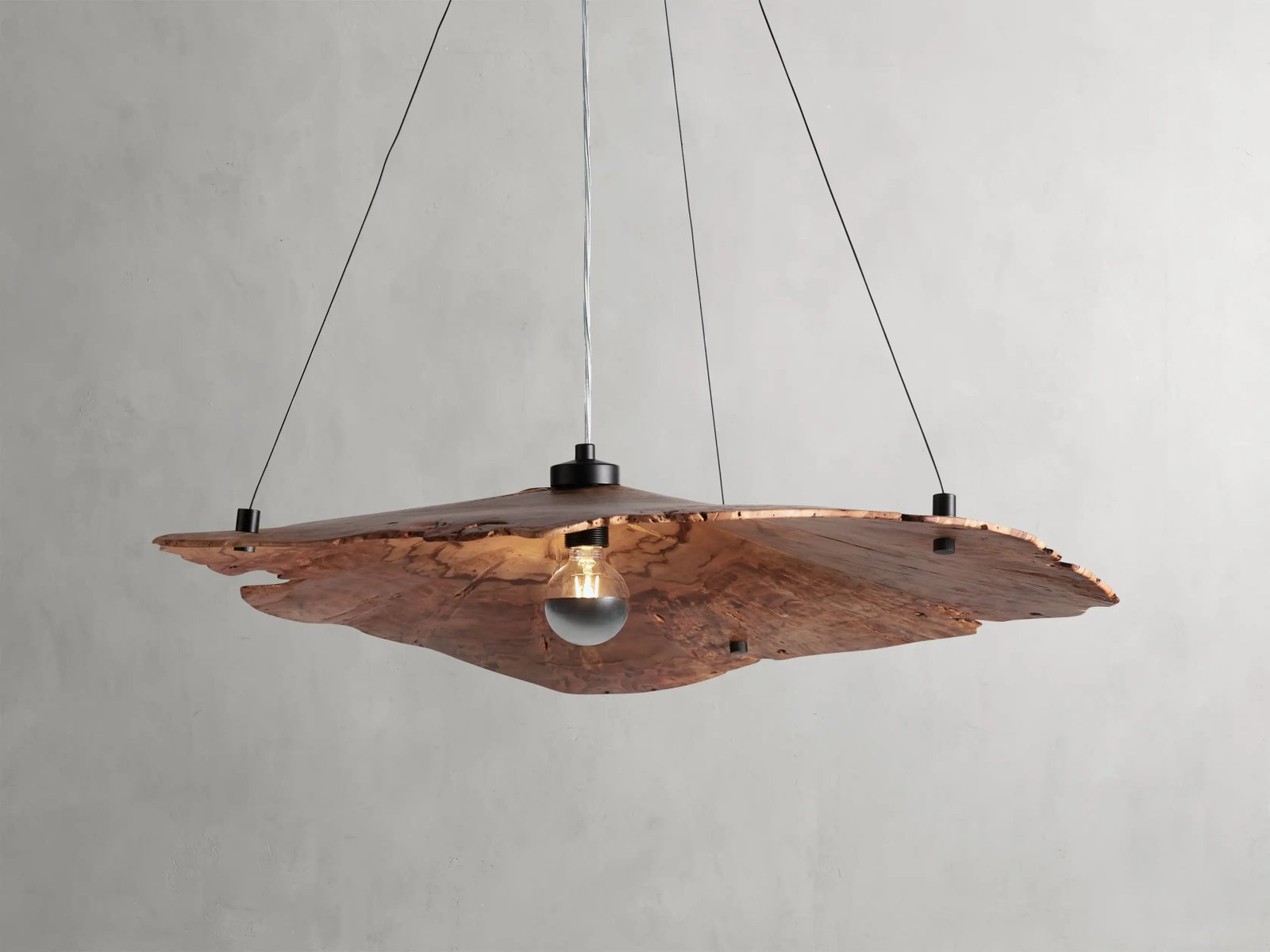 Celebrate the natural beauty of raw materials with our Arruga Collection, featuring salvaged milpa wood with every organic crack and grain pattern on display. Our imaginative artisan partners in Mexico slice the wood and leave them out in the sun to dry, creating the natural dome shape. Paired with matte black hardware and a unique metallic dipped bulb, Arruga is a showstopper for any space.
