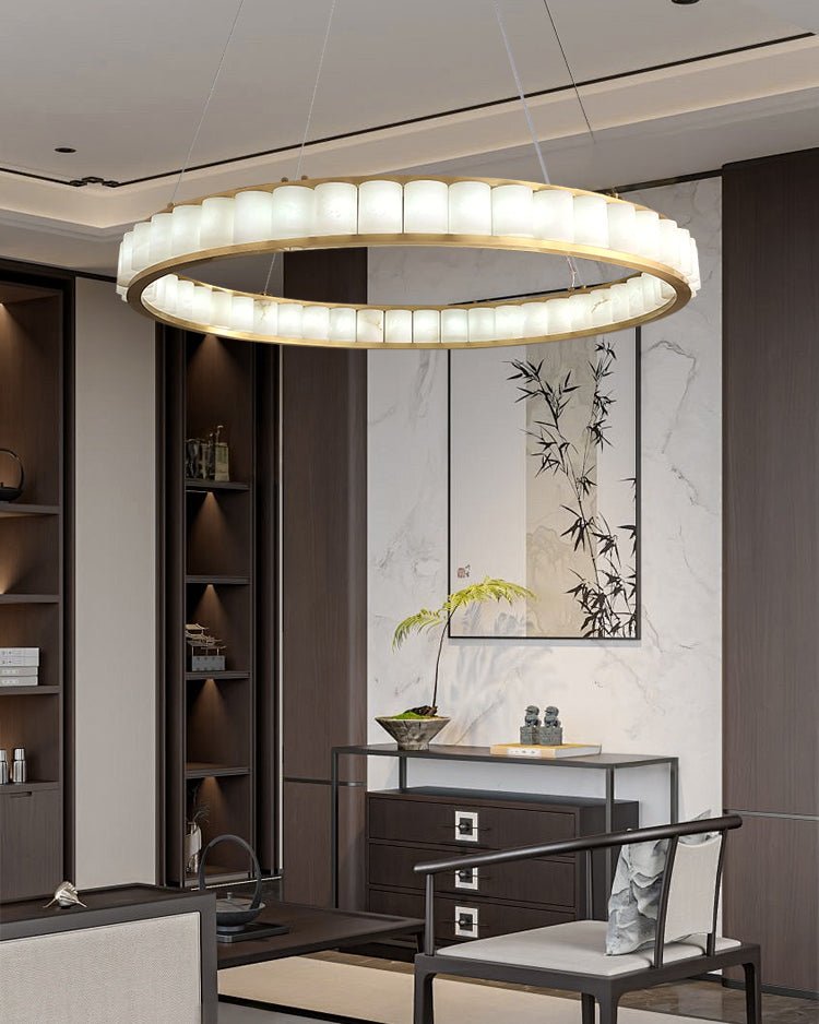 Transform your space into a luxurious sanctuary with our stunning circular jucci-WM2859. The alabaster and gold accents add a touch of elegance, while the industrial design creates a unique and modern appeal. Perfect for both dining and living rooms, this piece will elevate your home’s aesthetic.