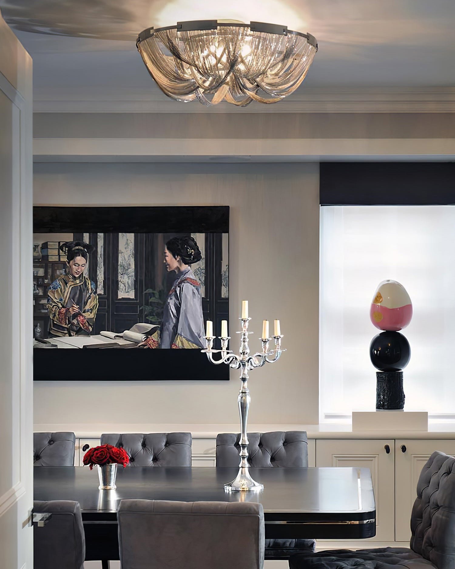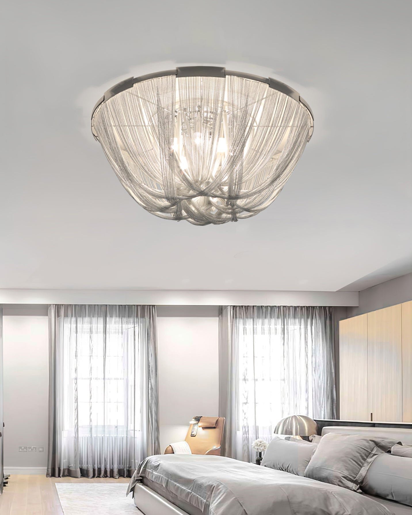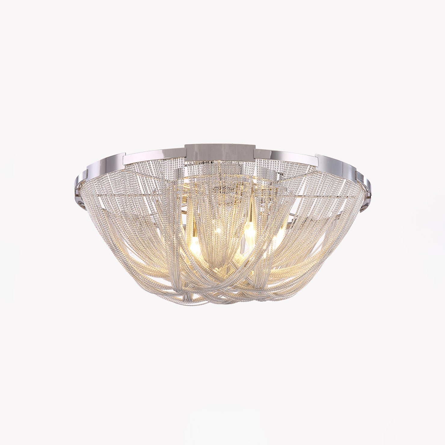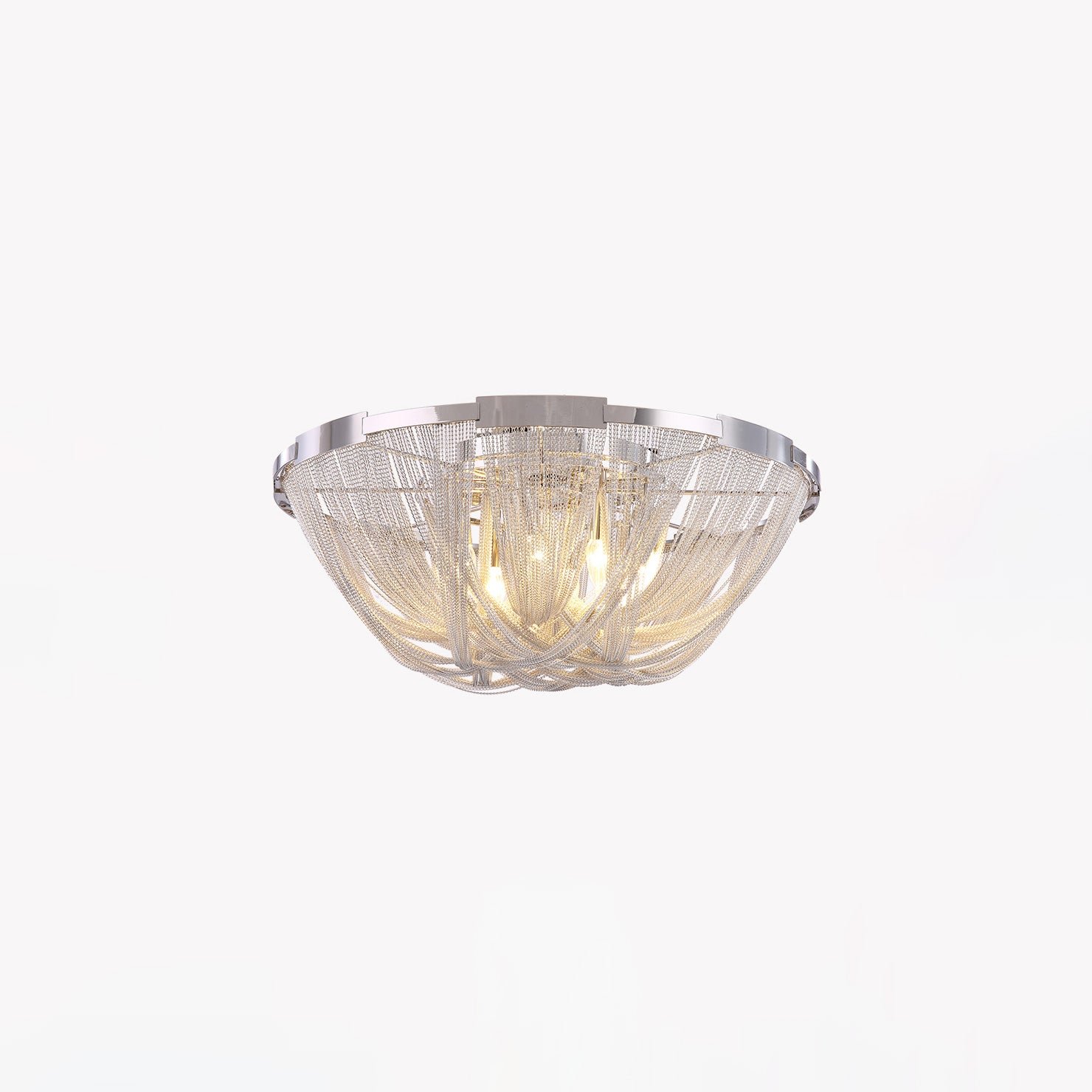Bring a touch of luxury to your home with the Lume Luxury Chain Tassel Ceiling Light. The Art Deco design and metal construction of this light fixture exude elegance and sophistication. The chrome and gold finish adds a glamorous touch to any bedroom or living room. Elevate your space with this stunning ceiling light!