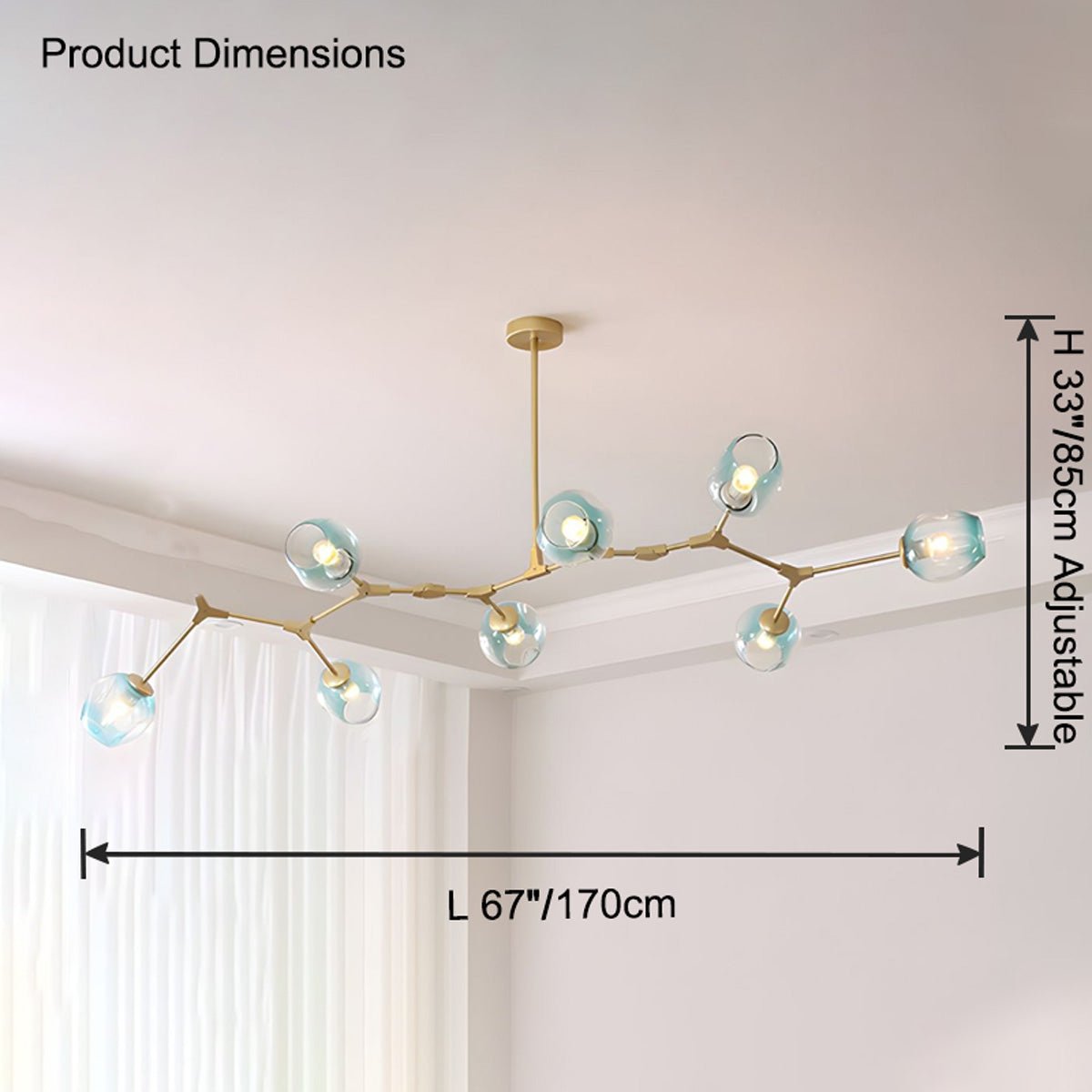 Transform your living spaces into vibrant and inviting environments with the jucci Branch Colored Glass Chandelier. Perfect for dining rooms, living rooms, and bedrooms, this chandelier boasts colorful smoked, grey, blue, clear, or amber glass, adding a touch of elegance and charm to any space. Brighten up your home today!