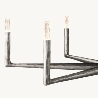 Rustic in style, simple in form and grandly sized, our hand-forged chandelier designed by industrial blacksmith Jon Sarriugarte makes an elegant statement. Drawing inspiration from early 20th century industrial fixtures, it’s built of stout angle iron.