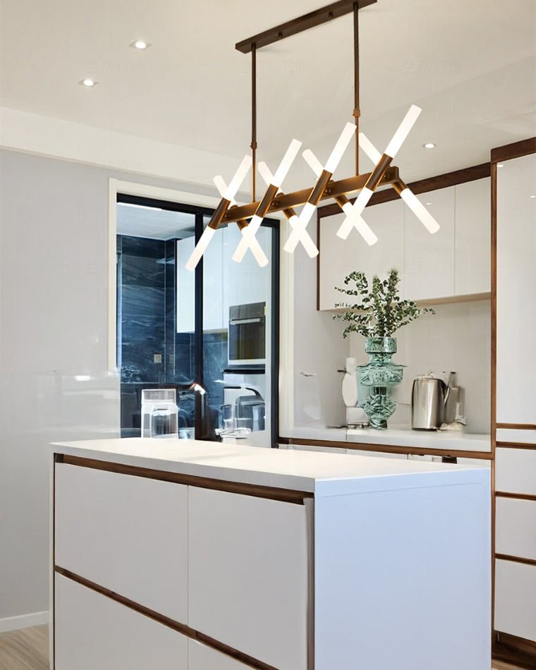 Transform your dining room or kitchen with the sleek and modern design of the jucci candle linear Chandelier. Crafted from black and gold metal, this chandelier adds a touch of elegance to any space. Its unique candle design creates a stunning visual that will impress your guests and elevate your decor.