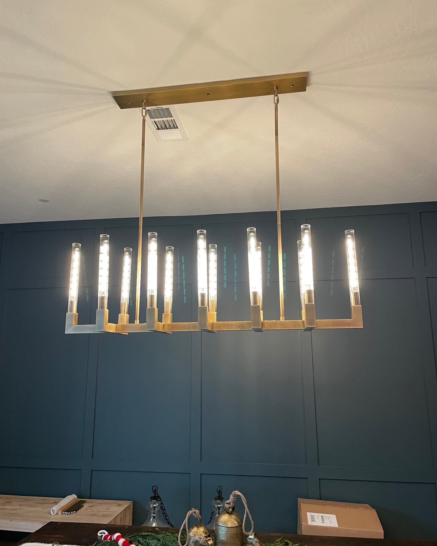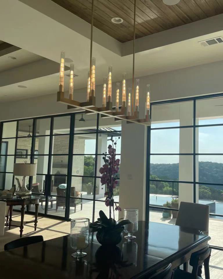 Upgrade your dining room or kitchen with the sleek and modern jucci Rectangular Metal Chandelier. Made with premium metal materials in silver, gold, or black, this chandelier adds a touch of elegance and sophistication to any space. Perfect for providing ample lighting with a torchiere feature, it’s a must-have for any stylish home.