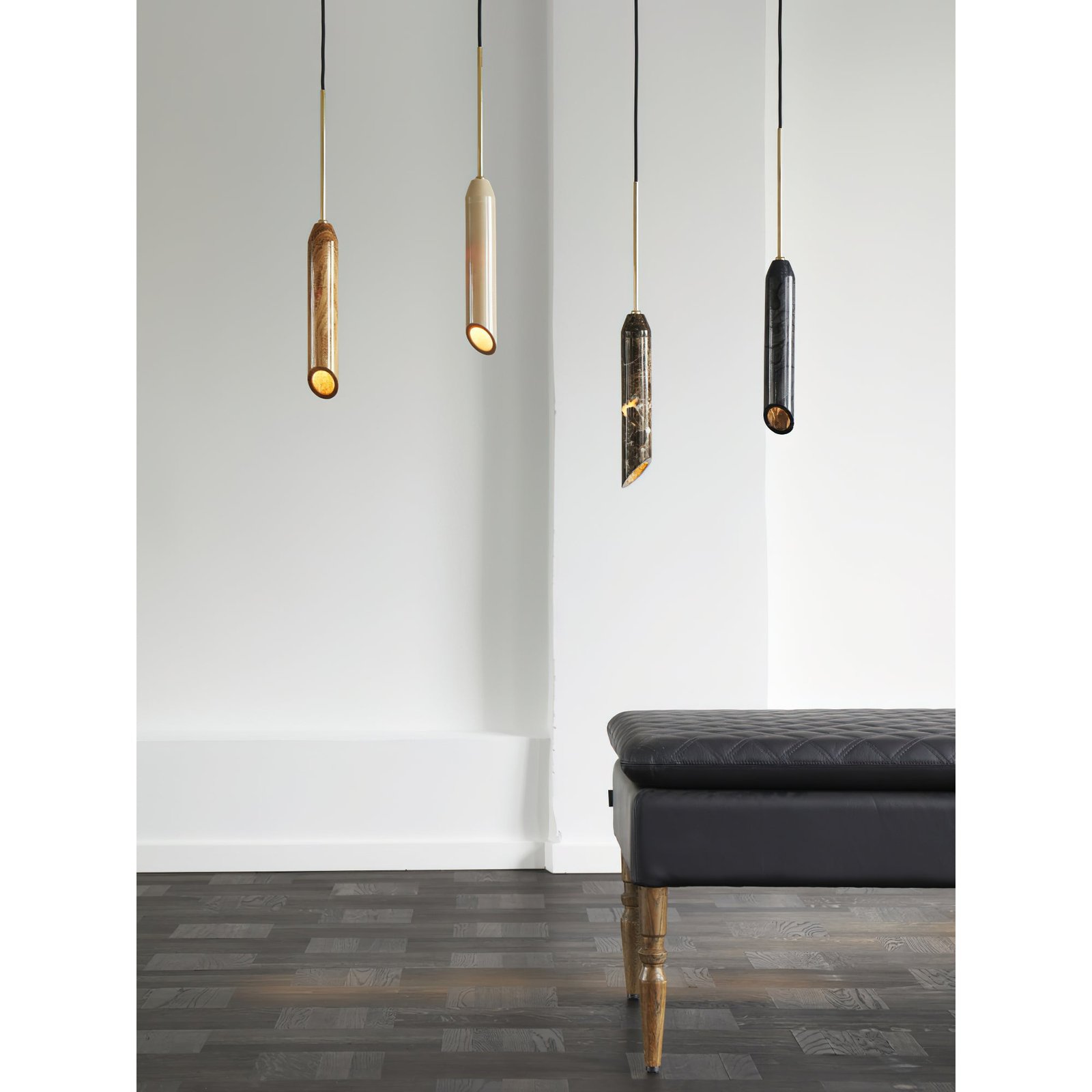 White, Beige travertine, Dark grey, Brown, Bulgari, Brass, Black.