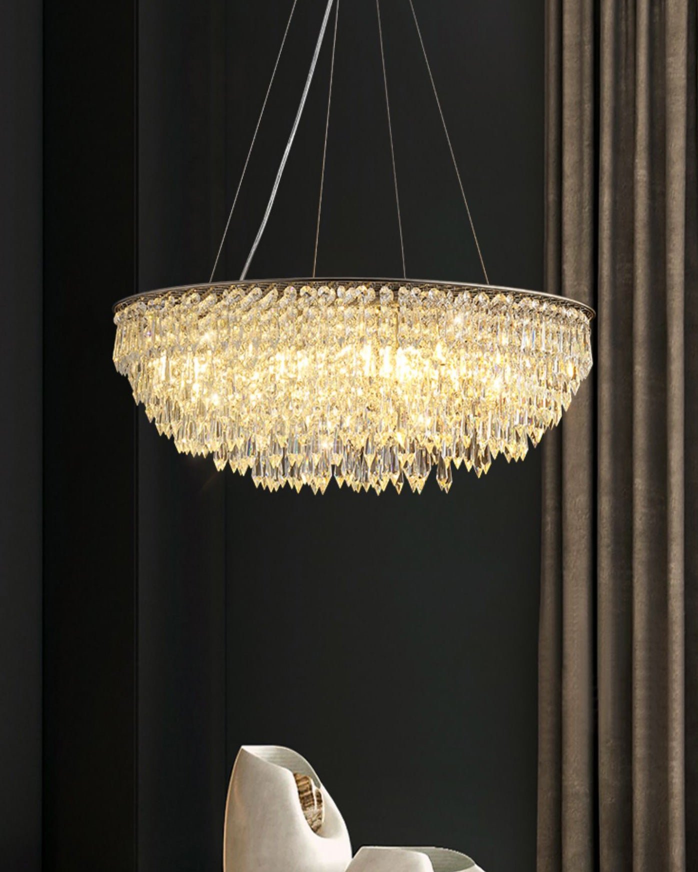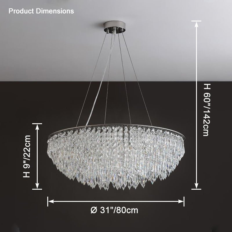 Enhance the elegance of your living room or foyer with our stunning jucci Cascading Crystal Chandelier! Featuring an Art Deco design, this chandelier is crafted with shimmering crystals and a sleek chrome finish. Illuminate your space with sophistication and style. A must-have for any modern home!