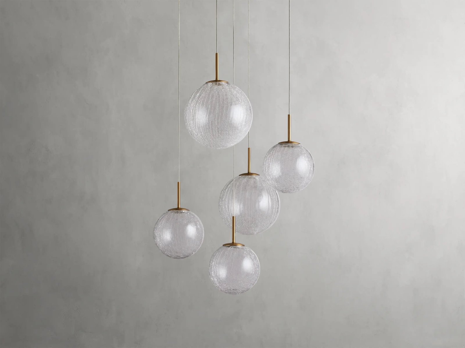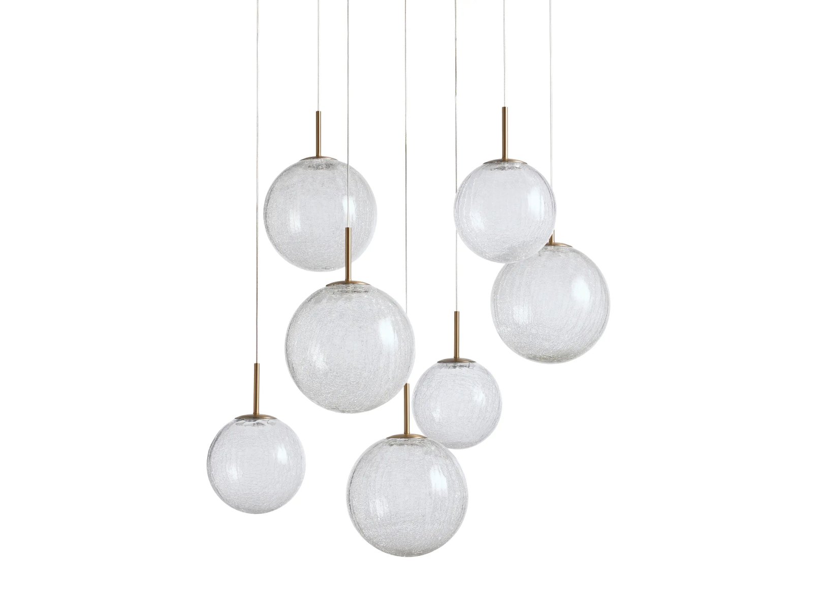• Crafted from stainless steel with a satin brass finish and a blown crackle glass globe.