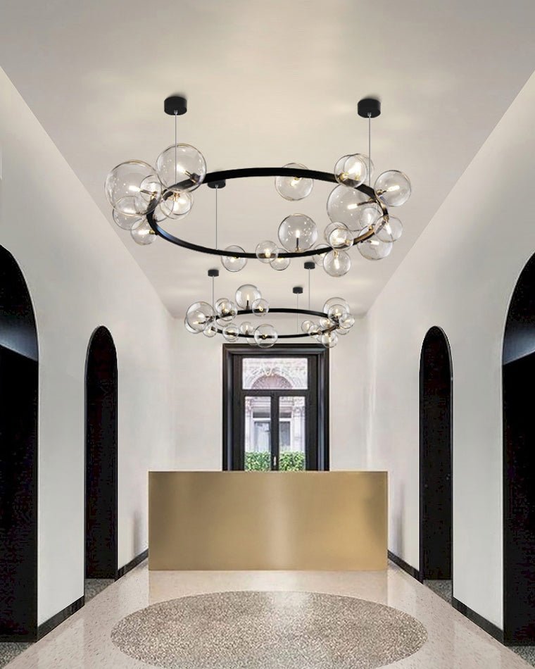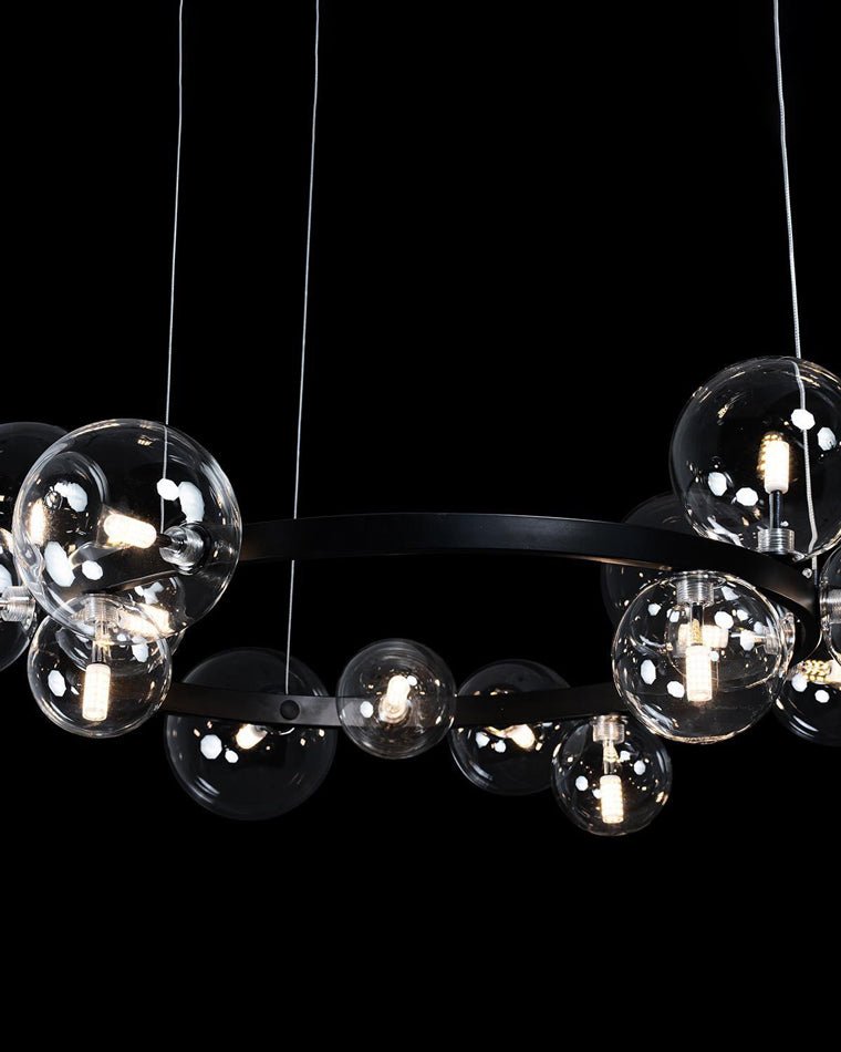 Enhance your living space with the dazzling jucci Smoked Glass Bubble Circular Chandelier-WM2292. The black finish adds a touch of sophistication while the smoked glass bubbles create a mesmerizing effect. Perfect for the living room, dining room, foyer, or bedroom. Let the bubbles captivate your senses!