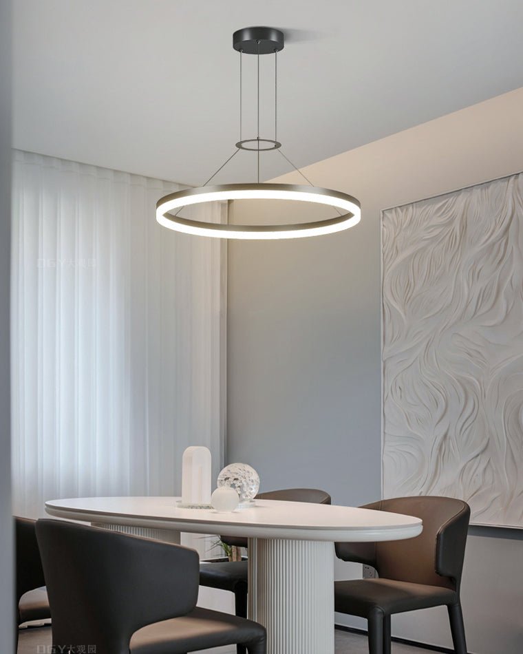 Create a stylish and sophisticated atmosphere in any room with jucci Halo Chandelier. Perfect for living rooms, dining rooms, and bedrooms, this dimmable chandelier adds an elegant and minimalist touch to your space. Elevate your home decor with this must-have lighting fixture!