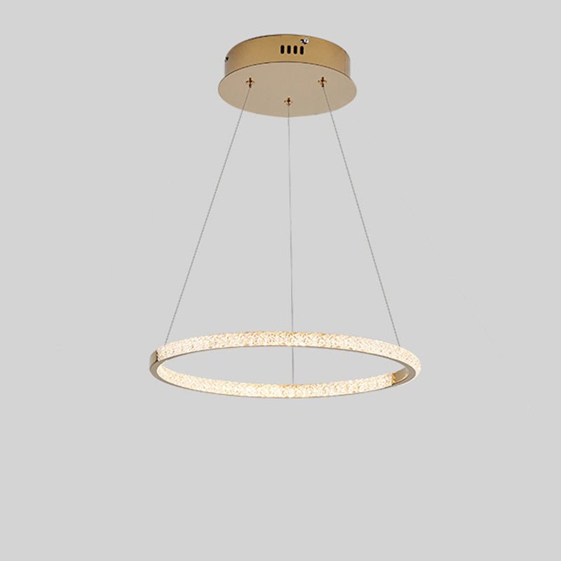 Illuminate your living space with the sleek and modern jucci Circular Led Pendant Light. Made of high-quality stainless steel and featuring a stylish circular design in a luxurious gold finish, this pendant light is the perfect blend of contemporary and elegance. Elevate your living room with this stunning addition and create a warm and inviting ambiance.