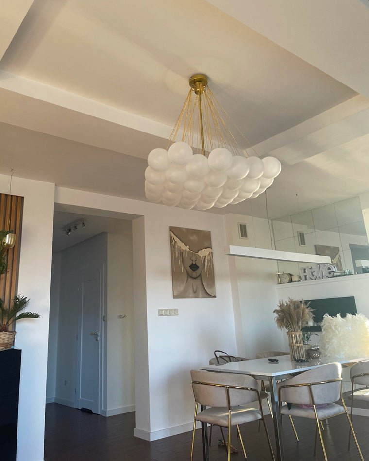 Modern and sophisticated, the jucci Cluster Frosted Glass Bubble Chandelier is the perfect choice for restaurants, kitchens, dining rooms, living rooms, bedrooms, and foyers! With its elegant frosted glass bubbles and stunning lines, this chandelier creates a special atmosphere that radiates luxury and style – how could you resist?