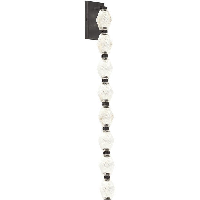 The Collier Wall Sconce exudes luxury and sophistication. Solid crystal elements made in the Czech Republic are linked together and brilliantly illuminated by integrated LEDs, creating a beautiful column of light. It can hang freely with the included finial attached to the end, or the end can be anchored to the wall using the included standoff. This eye-catching piece makes a stunning statement in any residential or commercial space. A universal 120-277V driver is included, dimmable with a TRIAC, ELV, or 0-10V dimmer.