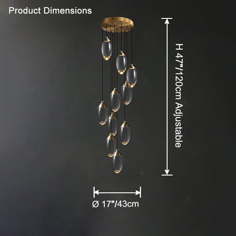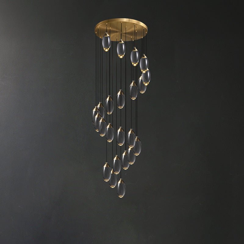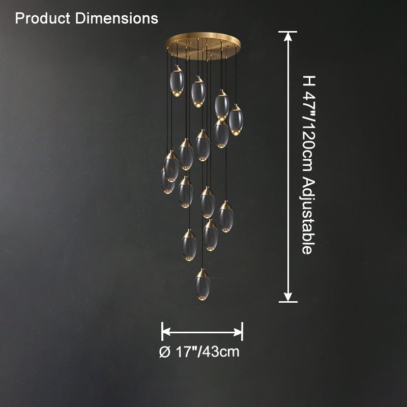 Elevate your space with our jucci Crystal Rain Chandelier-WM2733. This contemporary piece features a glamorous gold finish and sparkling crystal egg design, creating a stunning rainfall effect. Perfect for adding drama to any staircase or living space. Transform your home with this luxurious and elegant chandelier.