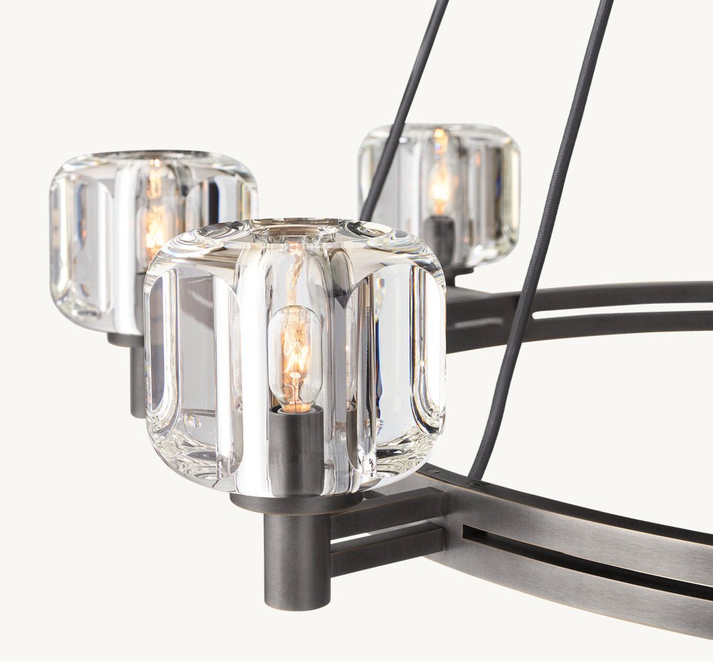 Jonathan Browning’s Demaret collection captures a sense of understated elegance. Set on a clean-lined mobile frame, its curved surfaces are crafted from cast K9 crystal and polished by hand to beautifully reflect and refract the light. The soft, rounded forms are cut with smooth oval facets on four sides to create a clear view through the crystal, the subtle embellishment lending relaxed refinement.