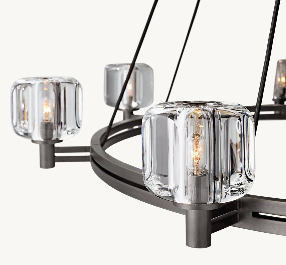 Jonathan Browning’s Demaret collection captures a sense of understated elegance. Set on a clean-lined mobile frame, its curved surfaces are crafted from cast K9 crystal and polished by hand to beautifully reflect and refract the light. The soft, rounded forms are cut with smooth oval facets on four sides to create a clear view through the crystal, the subtle embellishment lending relaxed refinement.