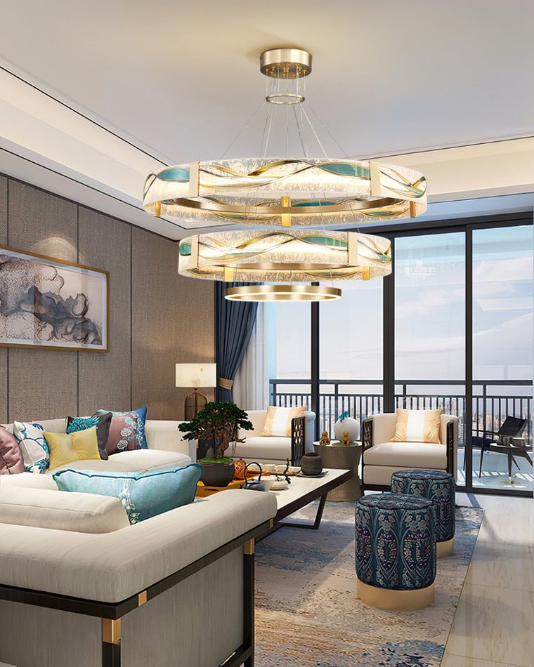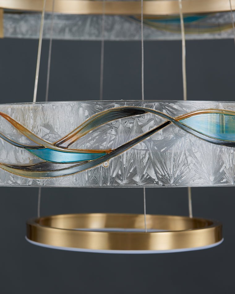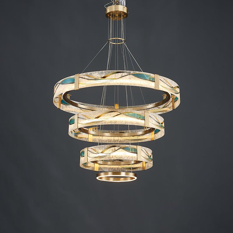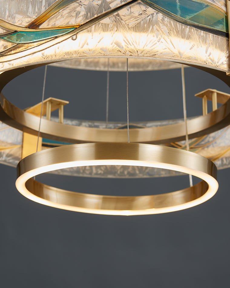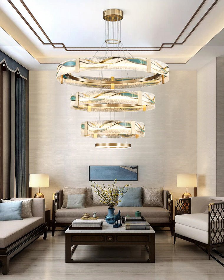Tags: 900-1999, Art Deco, Chandelier, Glass, gold, Living Room, Pendant light, Round, Tiered