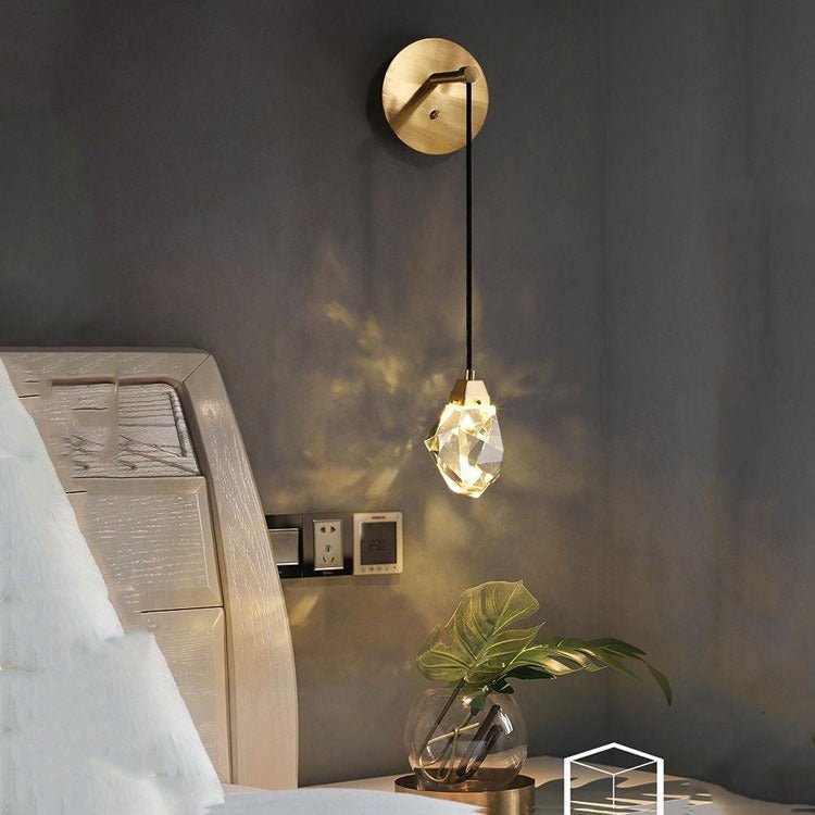 Faceted Crystal Masonry Wall Sconce Using Cord , Brass