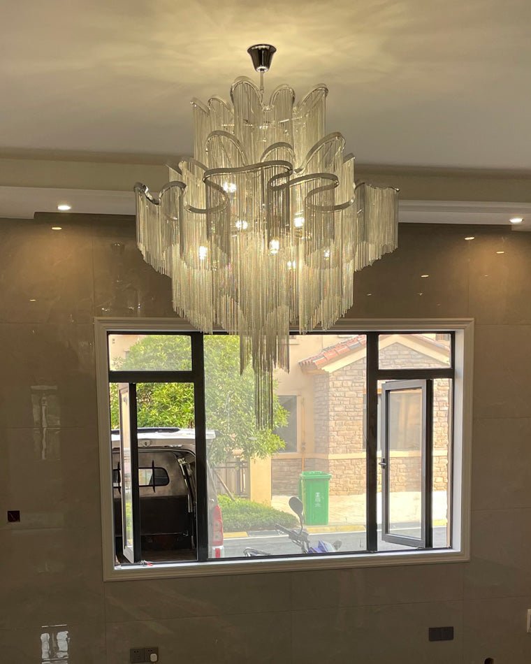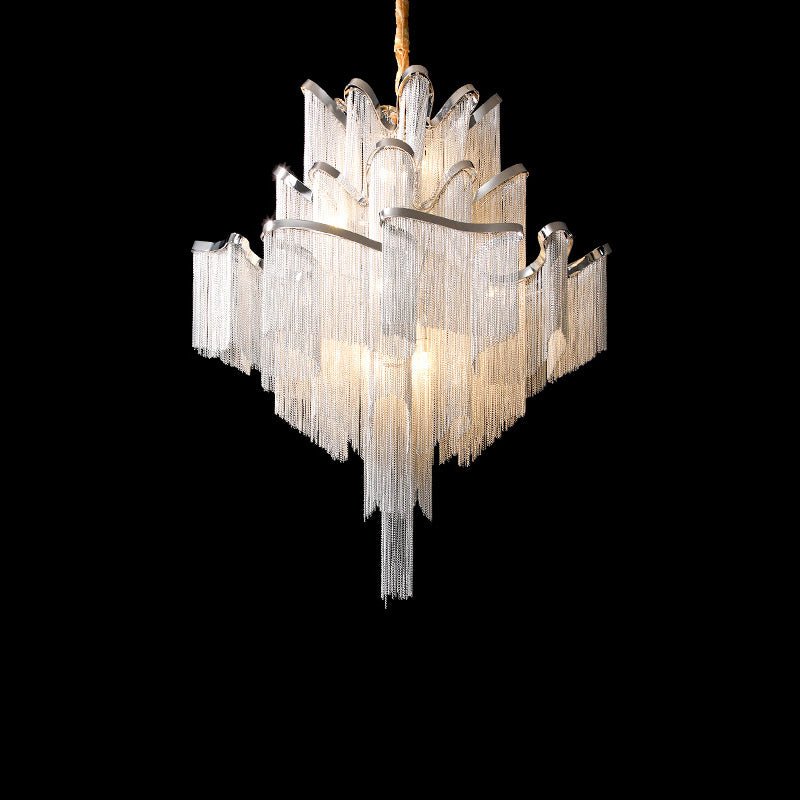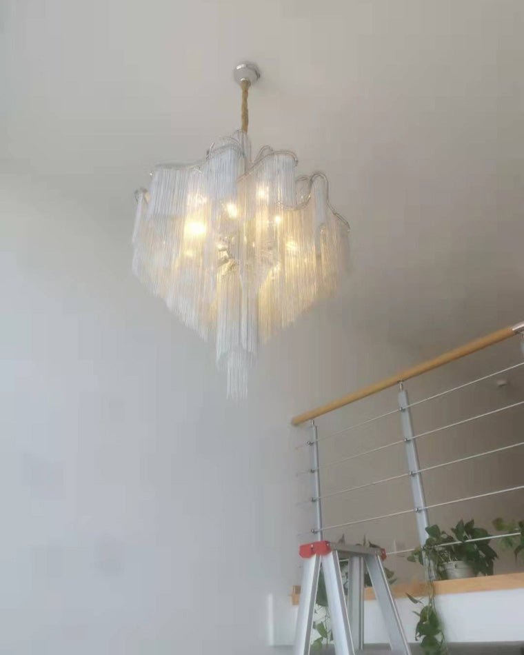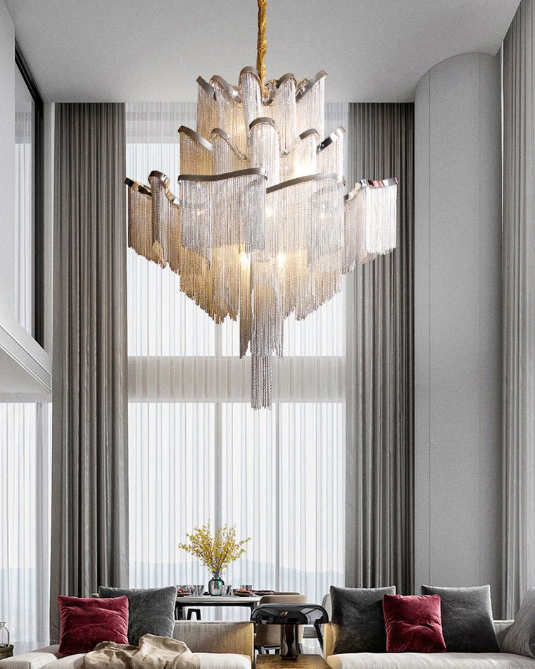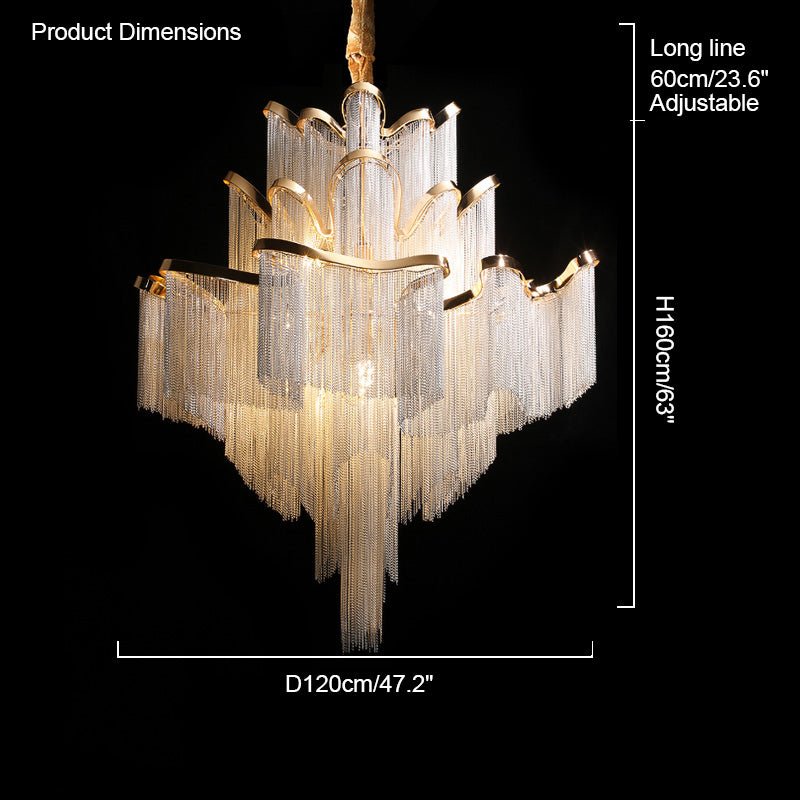 Experience the timeless beauty of the jucci Chain Fringe Chandelier, perfect for creating those special moments at home. Its modern pendant design and light fixture make it a must-have for any restaurant, living room, bedroom, foyer, or other indoor space. Its modern look is both decorative and artistic, adding a touch of elegance and luxury to any decor.