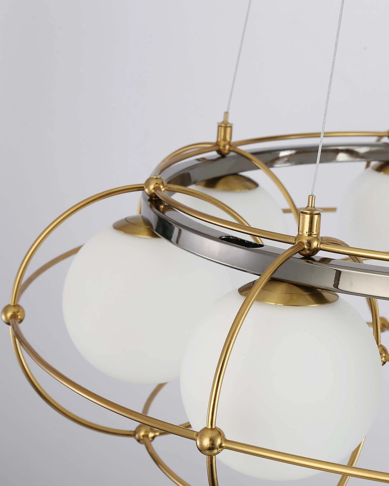Transform your dining room or bedroom into an art deco paradise with the elegant jucci Frosted Glass Ball Round Chandelier-WM2791. The frosted glass and gold and black details add a touch of sophistication and charm, making this chandelier the perfect addition to any modern and stylish space. Upgrade your lighting and elevate your home decor with this stunning piece!