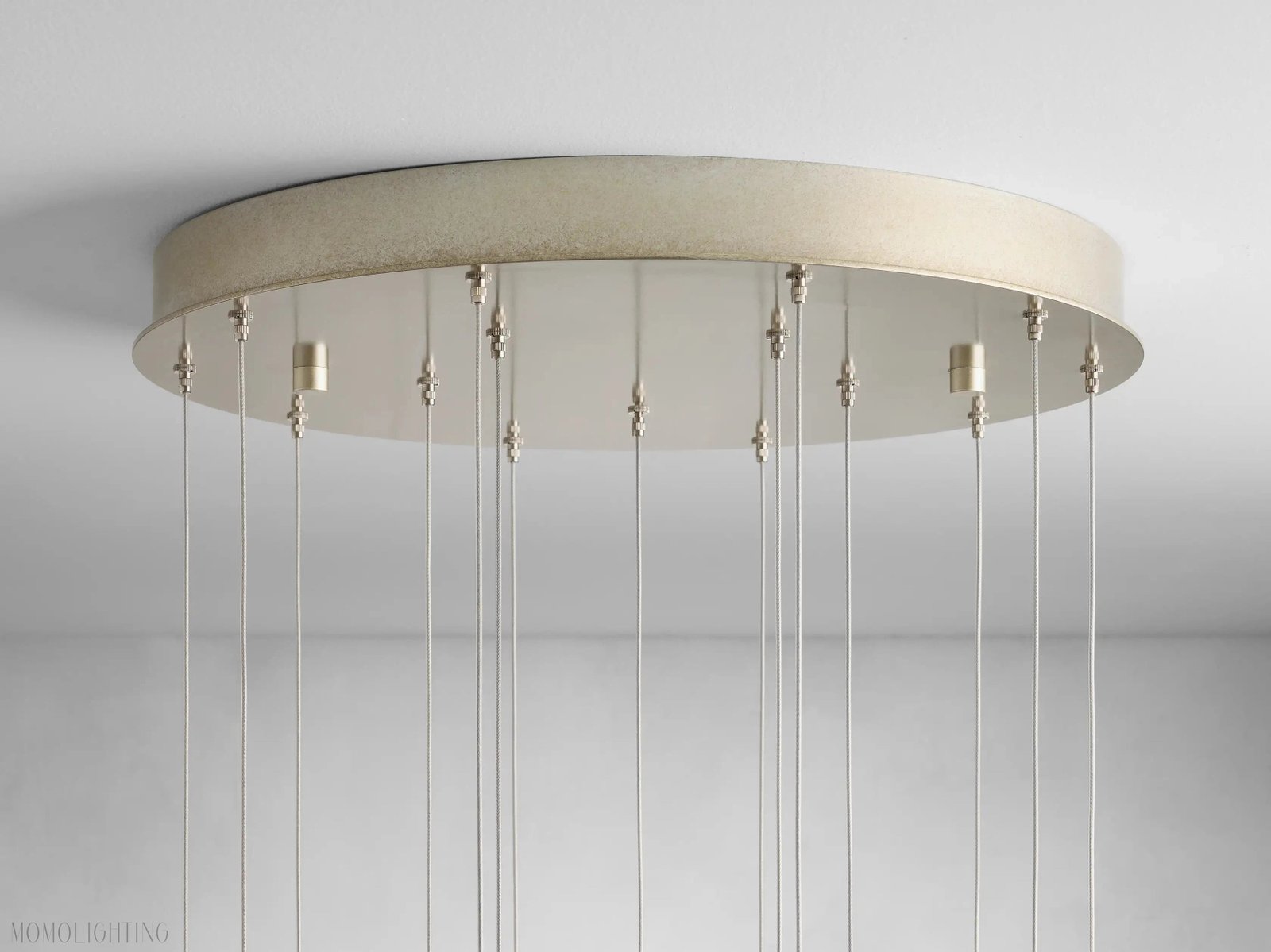 - 36-light chandelier ceiling canopy measures 33″ diameter x 2.5″ high and weighs 200 lbs.