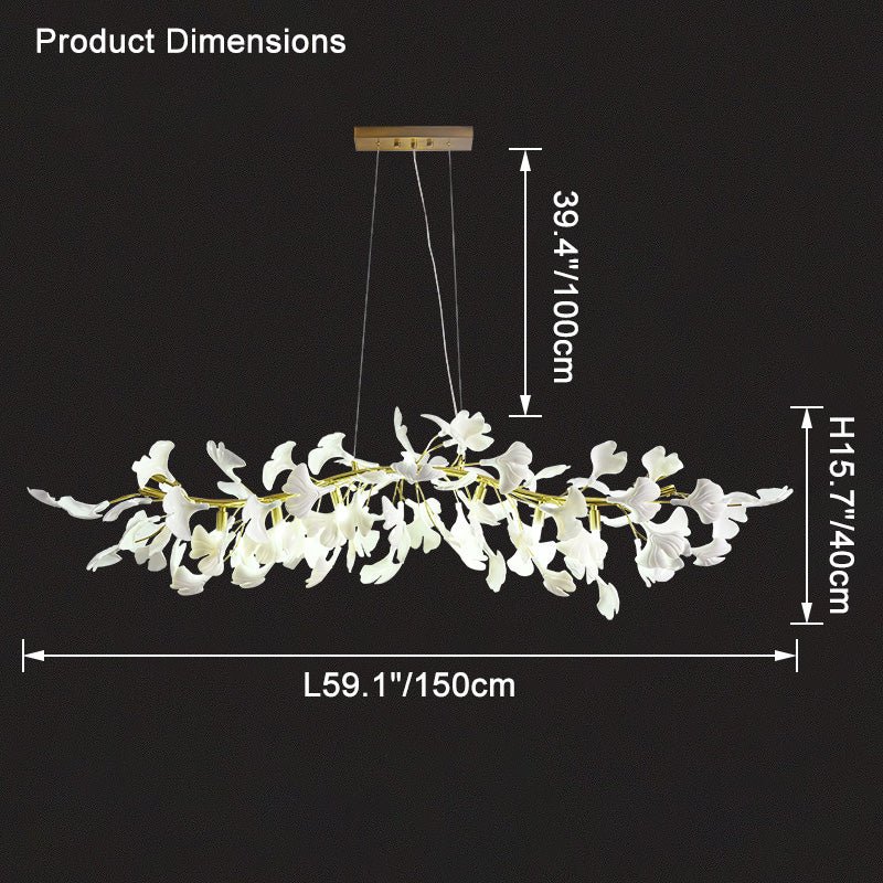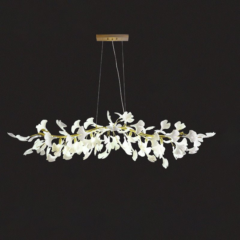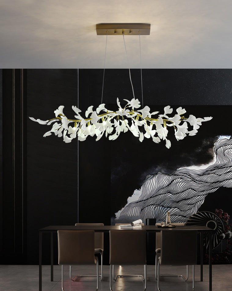 Experience contemporary elegance with the jucci Gingko Linear Chandelier! Its sleek and linear design, inspired by the beautiful gingko leaf, adds a touch of sophistication to any dining room. Made of high-quality ceramic, it not only adds style but also durability. Complete the look of your dining room with this stunning white chandelier.
