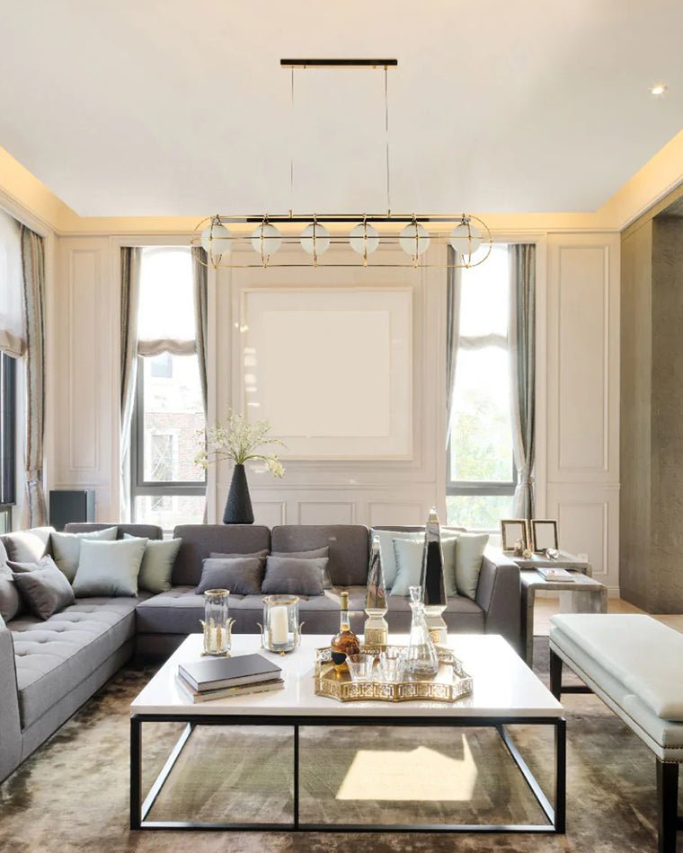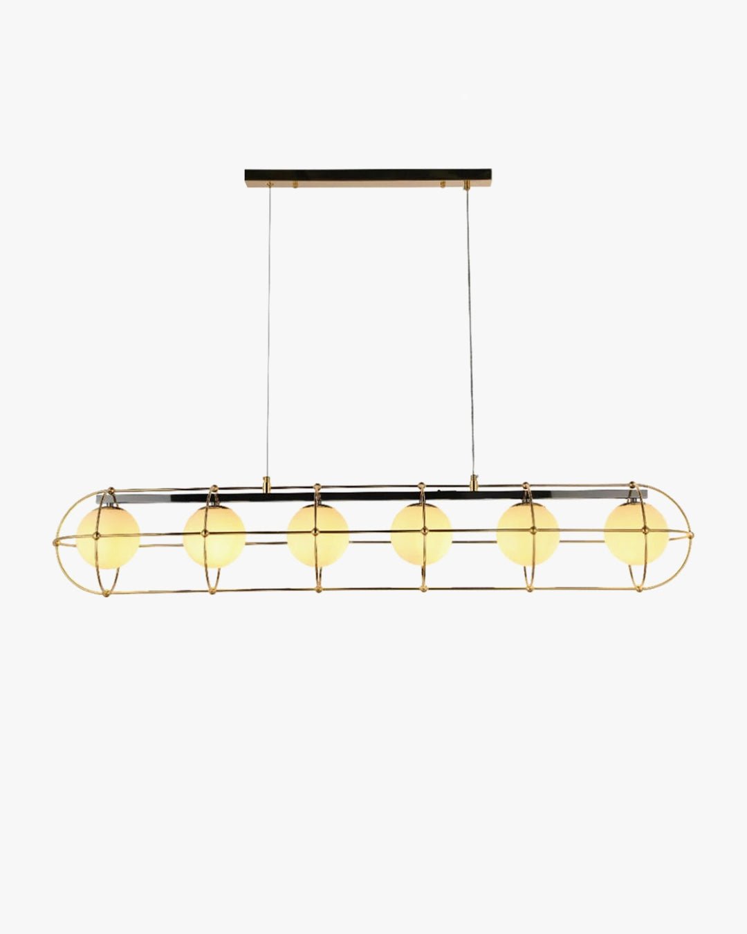 Transform your dining room into a sophisticated space with the jucci Glass Ball Linear Chandelier. Its elegant gold and black design, made from high-quality metal and glass, adds an Art Deco touch to any room. Elevate your dining experience with this stunning chandelier.