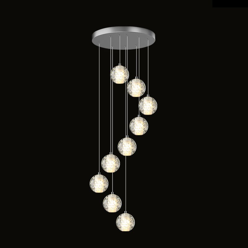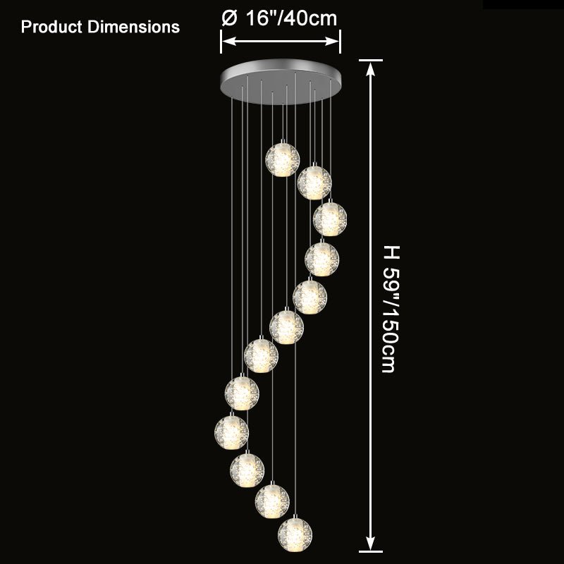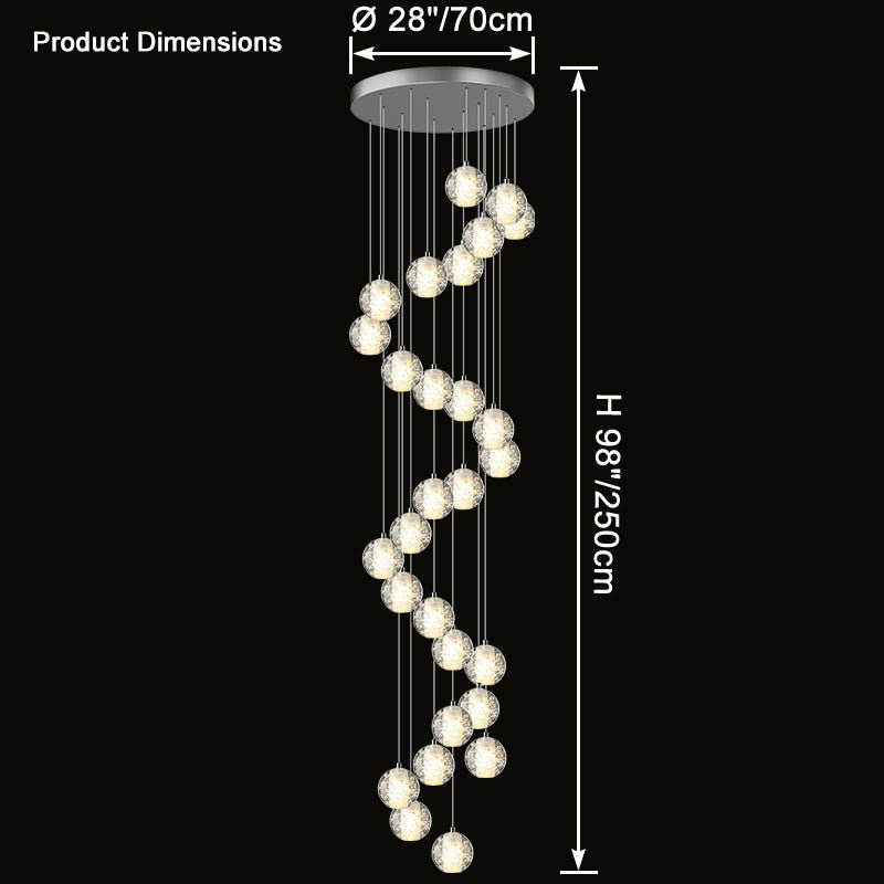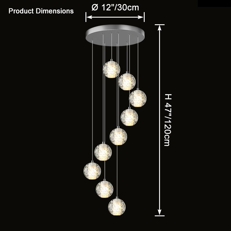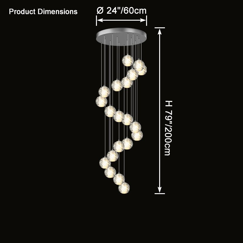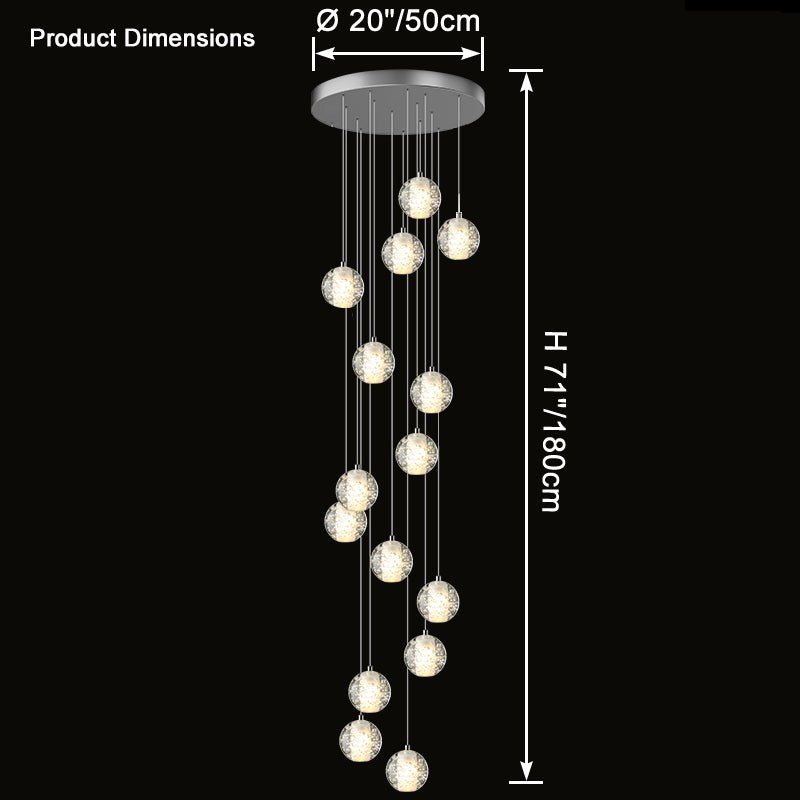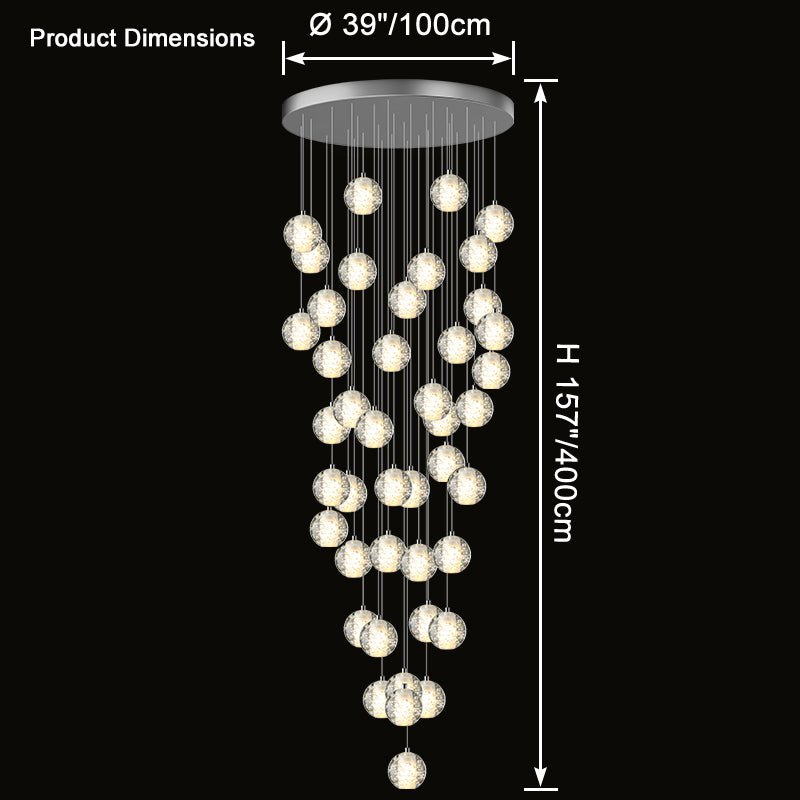 Elevate your space with the stunning jucci Cascading Glass Ball Chandelier. Featuring cascading seeded glass balls and a gleaming chrome canopy, this chandelier is perfect for adding a touch of sophistication to any staircase or dining room. Bring the beauty of a rainstorm indoors and create a mesmerizing ambiance that will surely impress your guests.