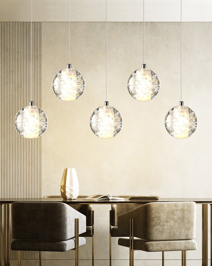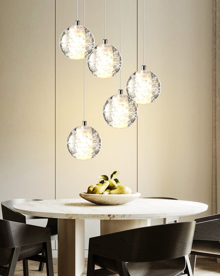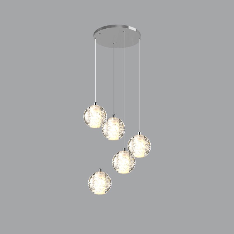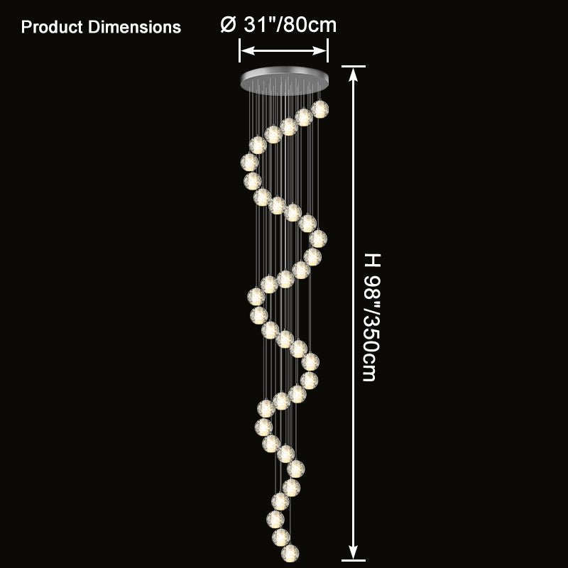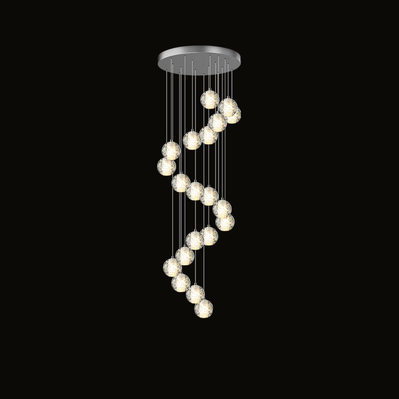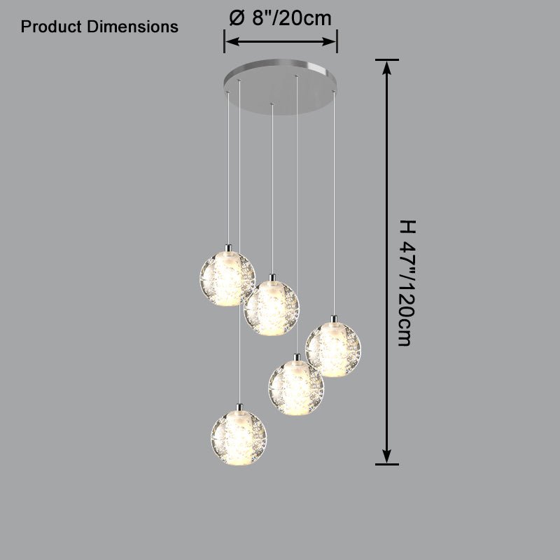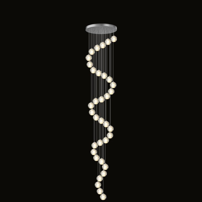 Elevate your space with the stunning jucci Cascading Glass Ball Chandelier. Featuring cascading seeded glass balls and a gleaming chrome canopy, this chandelier is perfect for adding a touch of sophistication to any staircase or dining room. Bring the beauty of a rainstorm indoors and create a mesmerizing ambiance that will surely impress your guests.