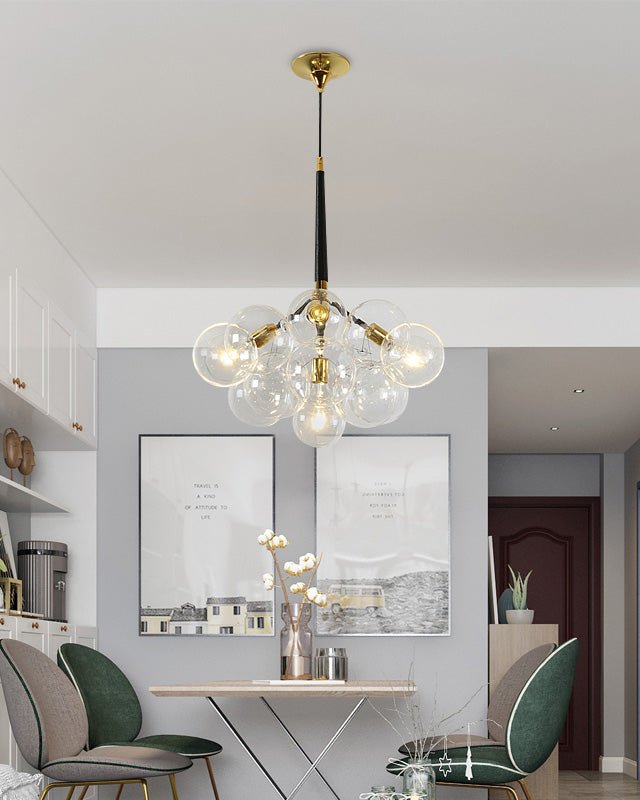 Elevate your bedroom with the breathtaking jucci Glass Bubble Chandelier. This mesmerizing fixture features glass bubbles with black, gold, or chrome branch, adding a touch of mid-century modern flair to any space. Experience the sensory delight of this unique chandelier and transform your room into a stylish oasis.