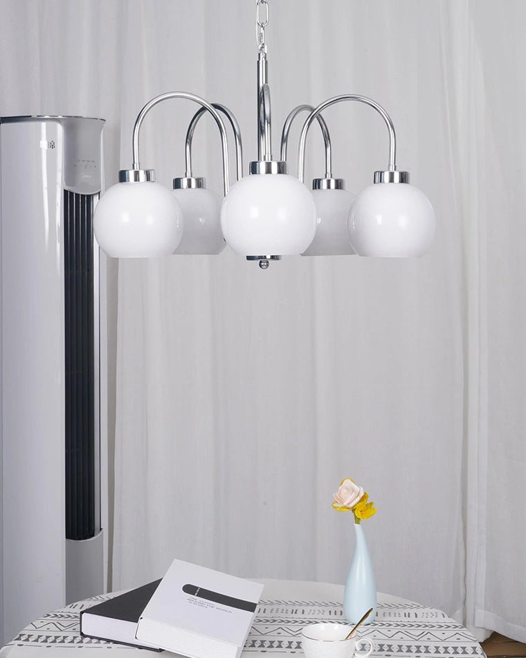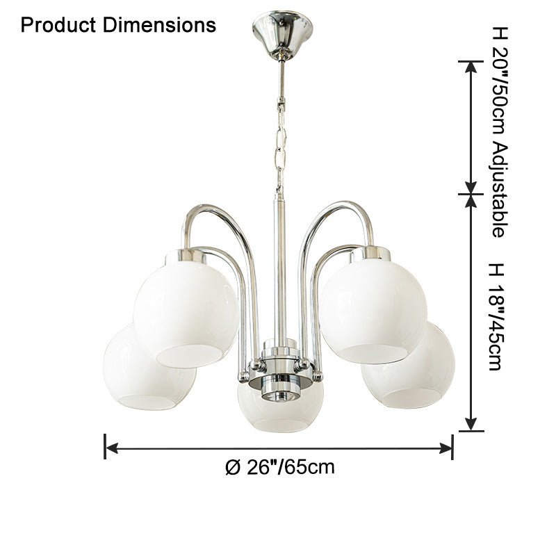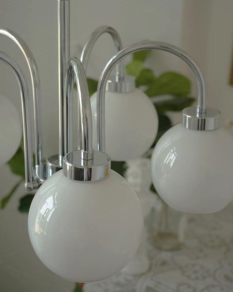Inspire your living space with the vintage charm of our jucci Glass Globe Chandelier. The delicate glass globes in white and orange add a touch of warmth and elegance to any living room. Elevate your décor with this timeless piece.