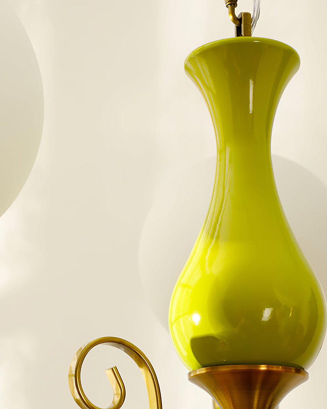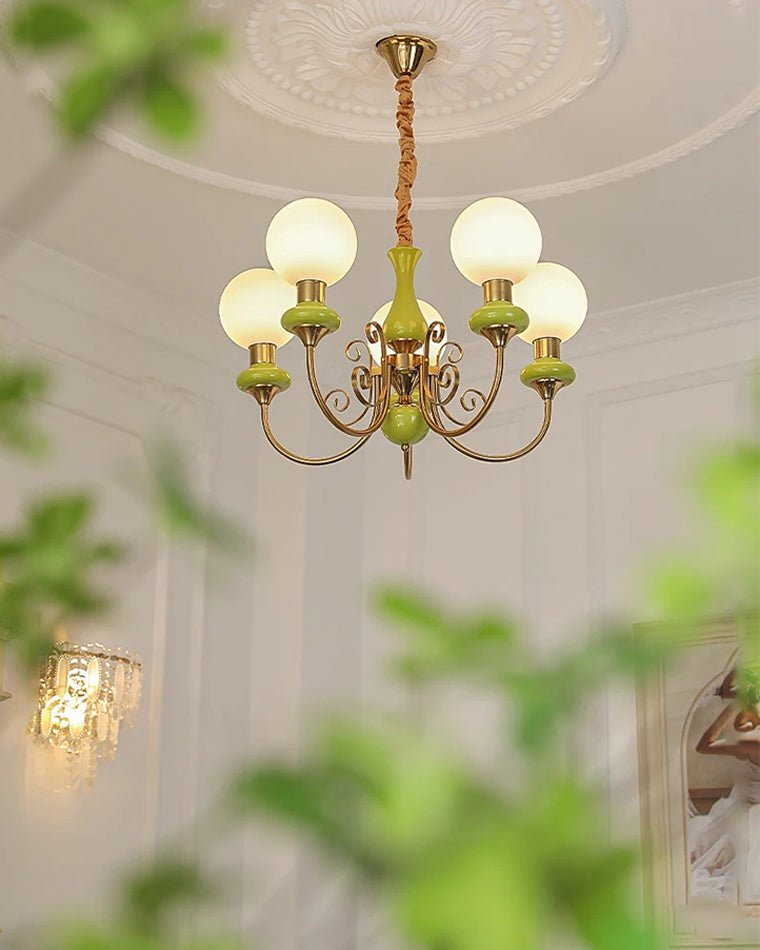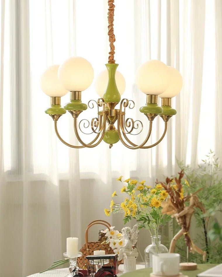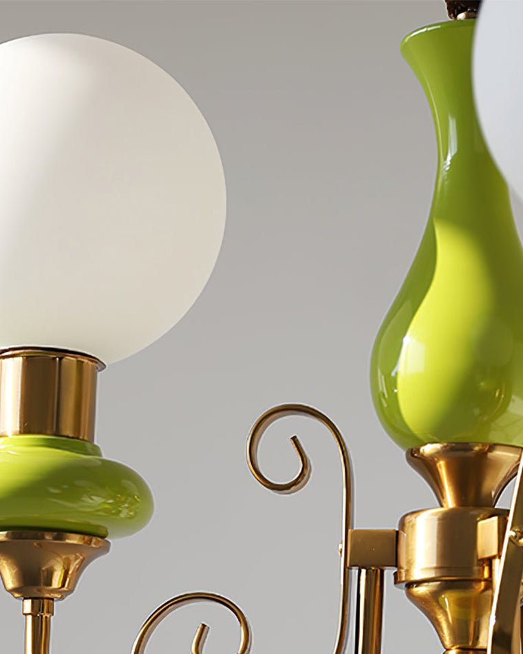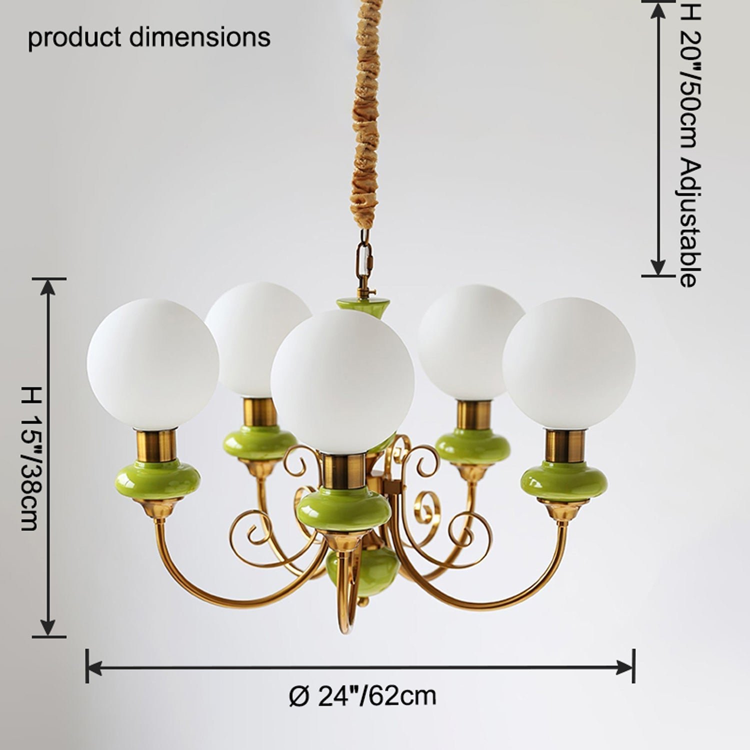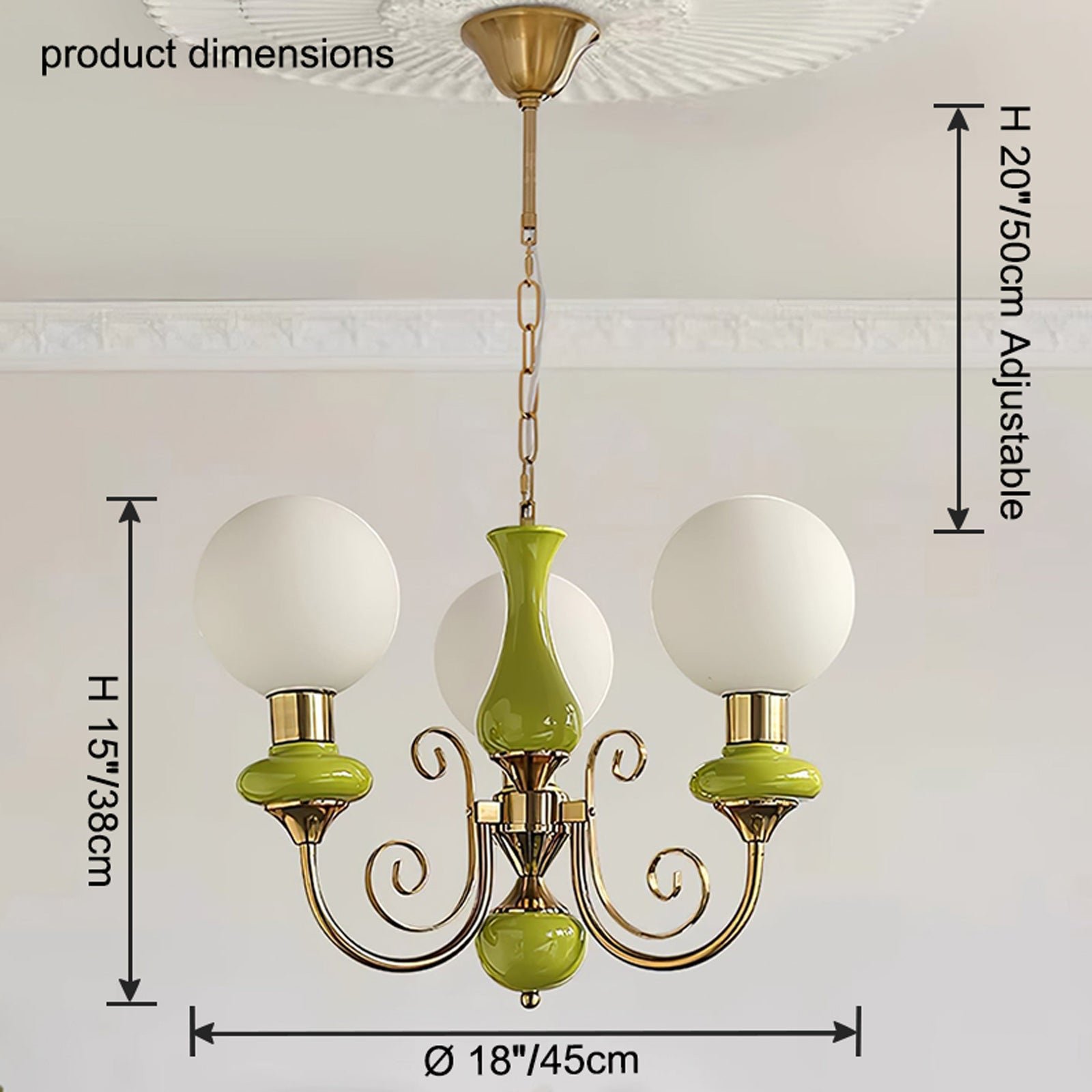 Add a touch of French elegance to your home with our jucci Glass Globe Arm Chandelier. Made of sturdy metal and beautiful glass, this chandelier will elevate any dining or living room decor. The sleek globe design in a vibrant green color will bring a fresh and modern feel to your space.