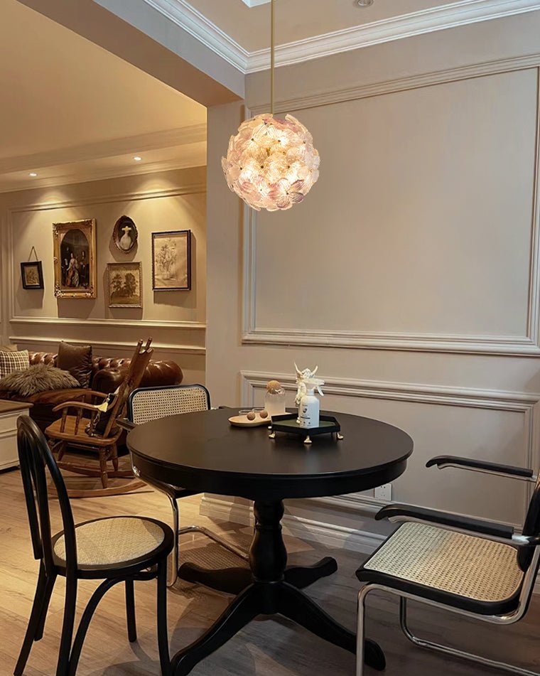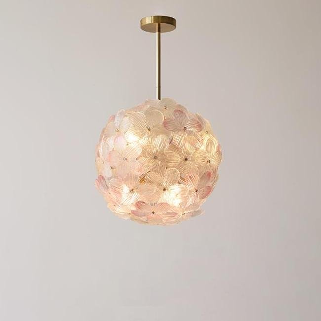 Transform your space with the stunning jucci Glass Orb Chandelier! This mesmerizing fixture features a beautiful pink, green, and gold glass globe, adding a touch of glamour to any bedroom or dining room. Get ready to bask in the warm and luxurious glow of this must-have chandelier.
